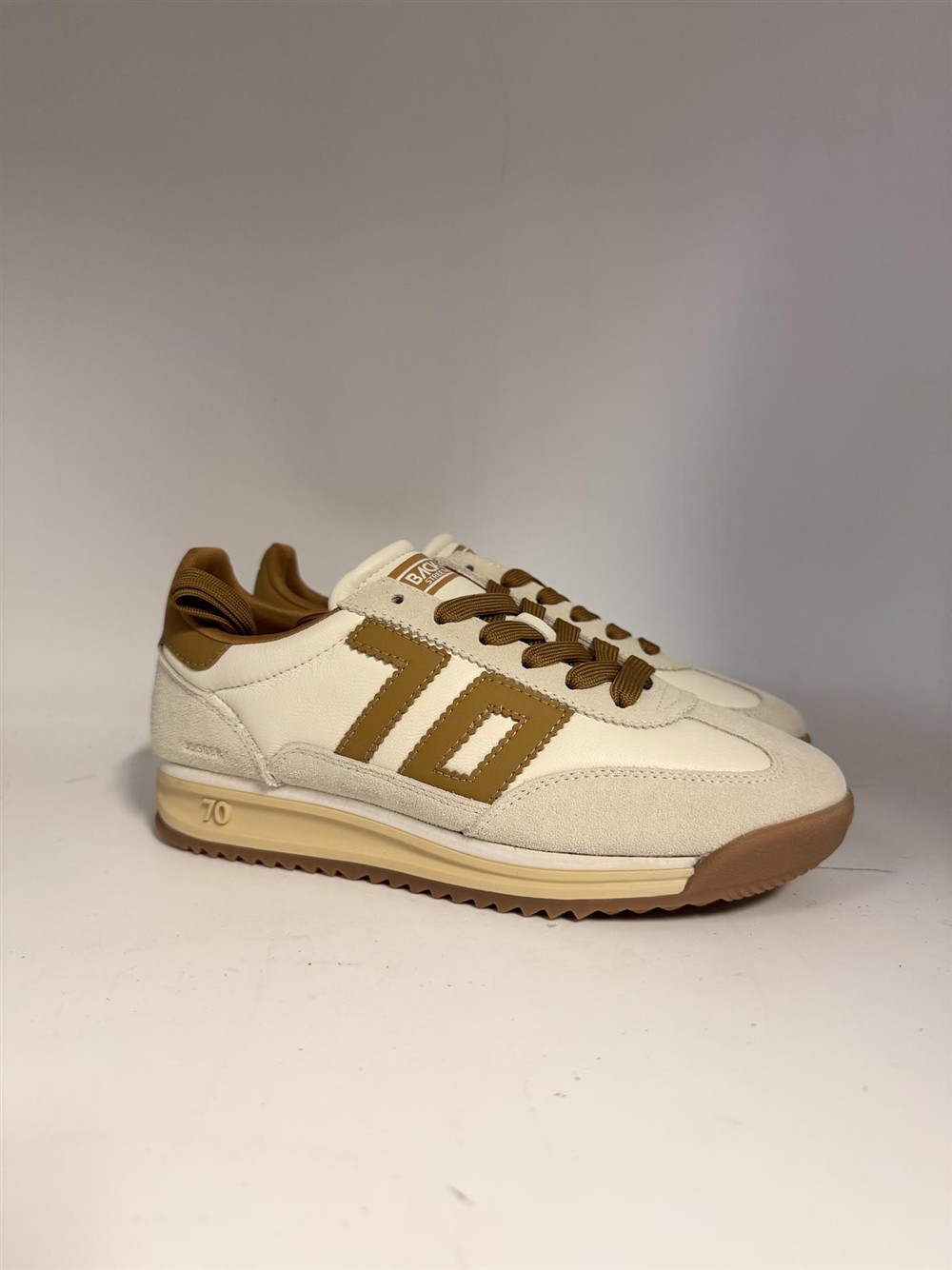 Sneaker in camoscio e pelle beige ocra BACK 70