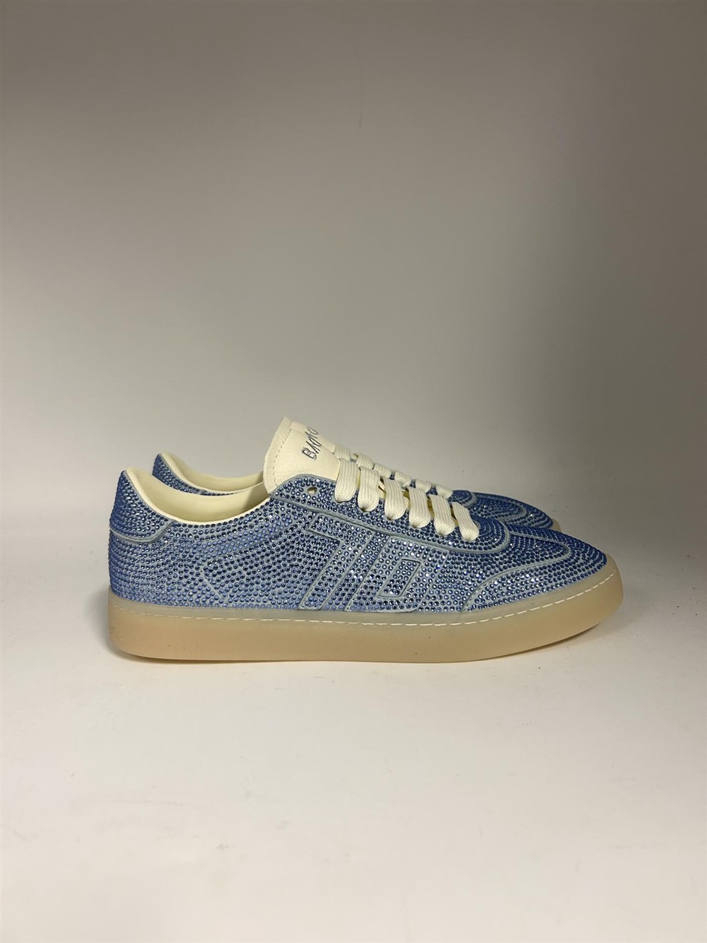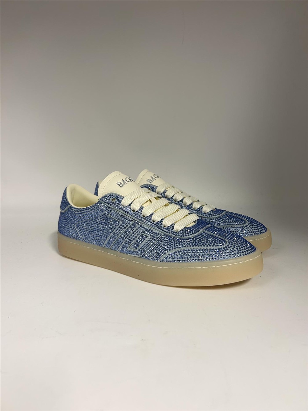 Sneaker in tessuto celeste con strass BACK 70