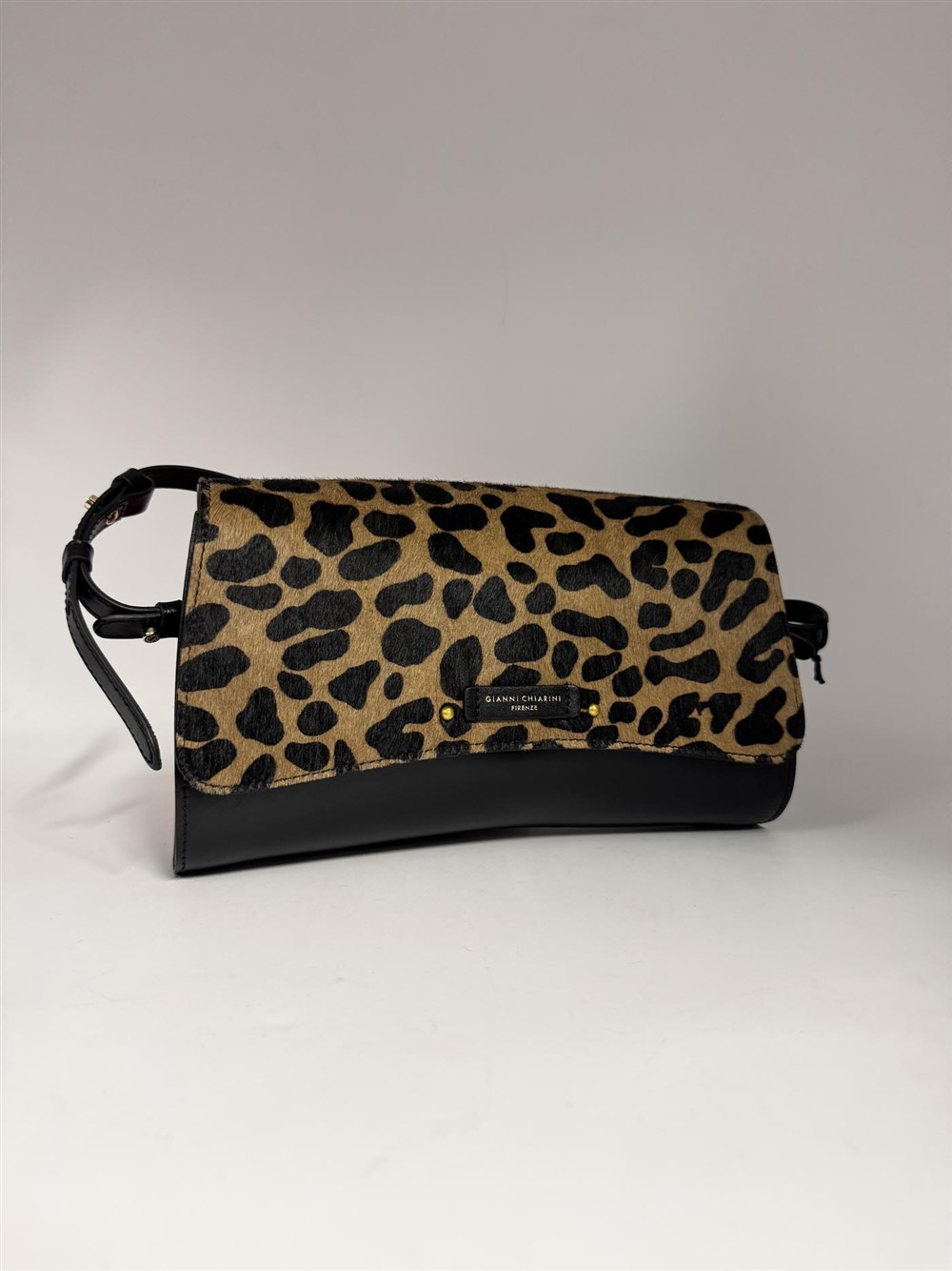 Borsa Keira in pelle nera e camoscio animalier Gianni Chiarini
