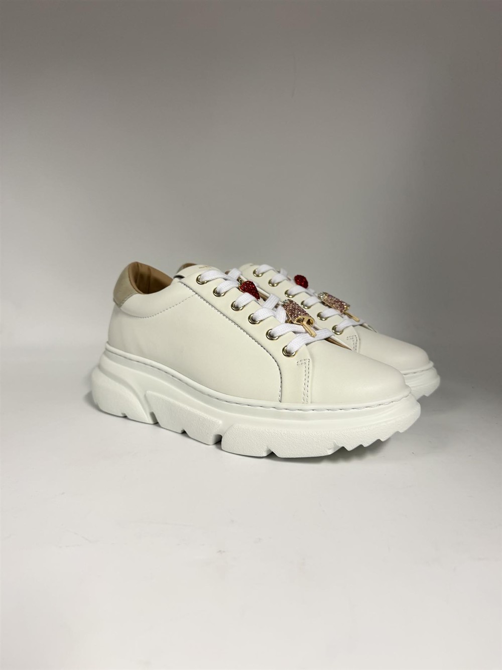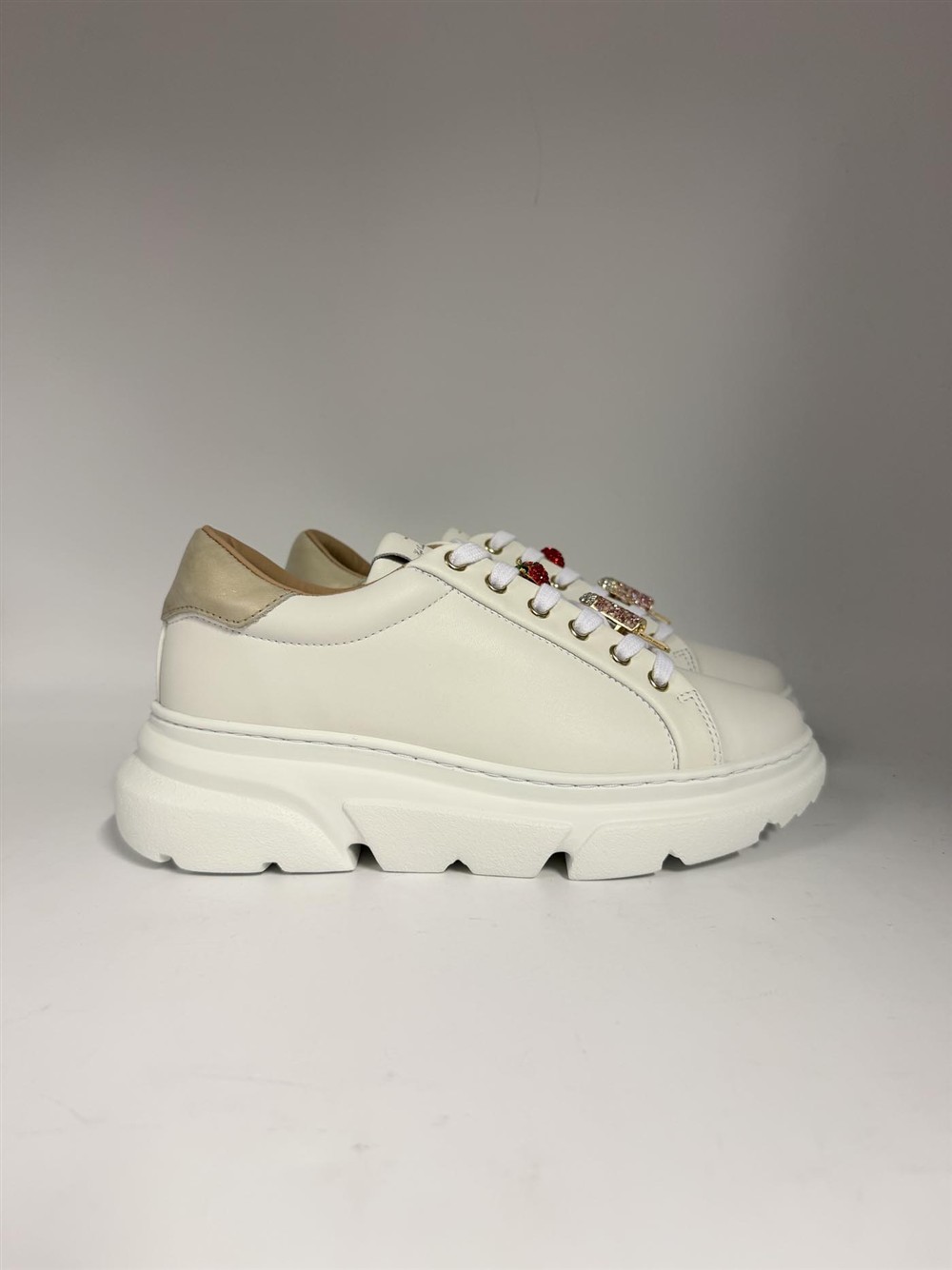 Sneaker in pelle bianca con accessori