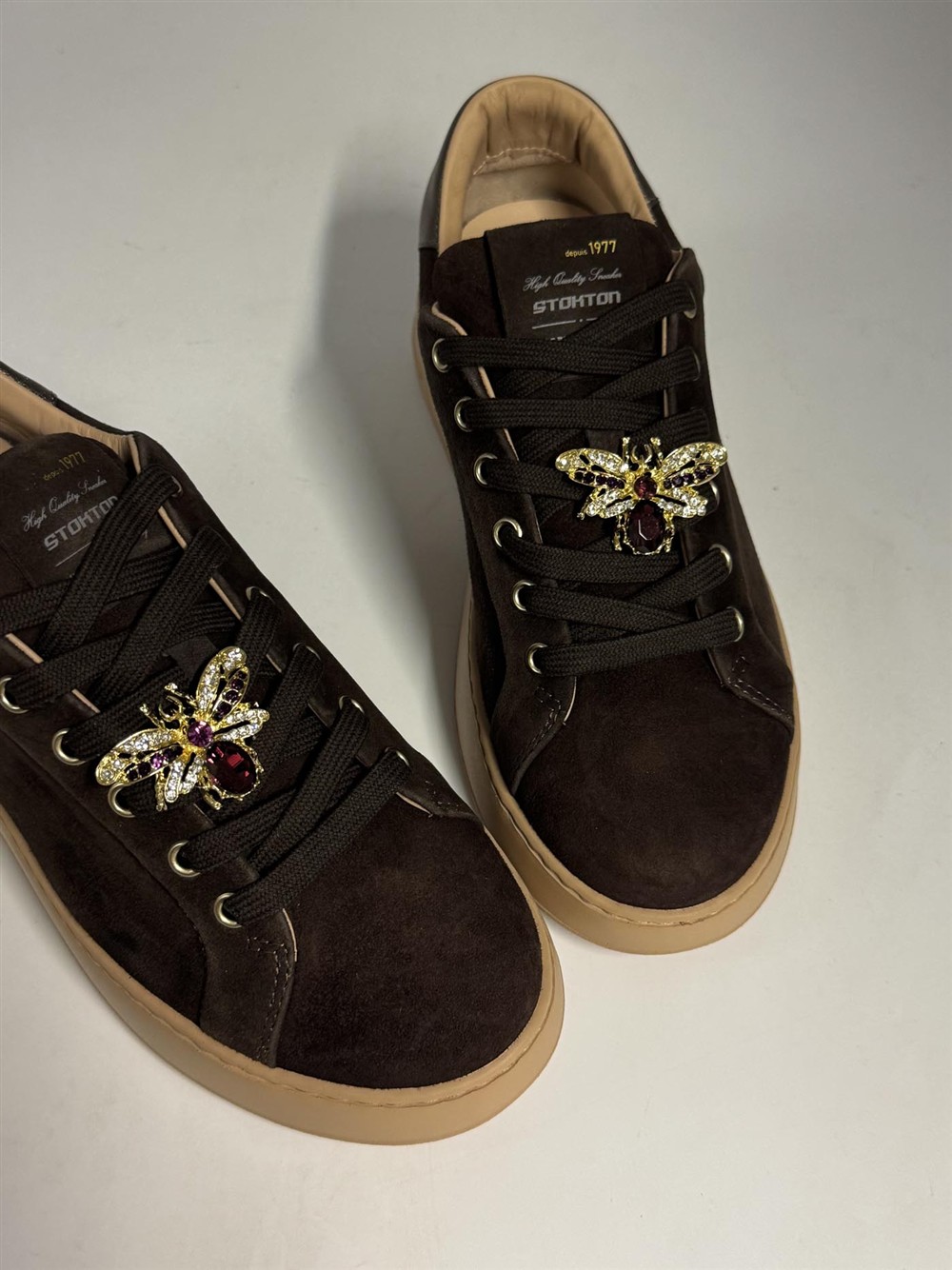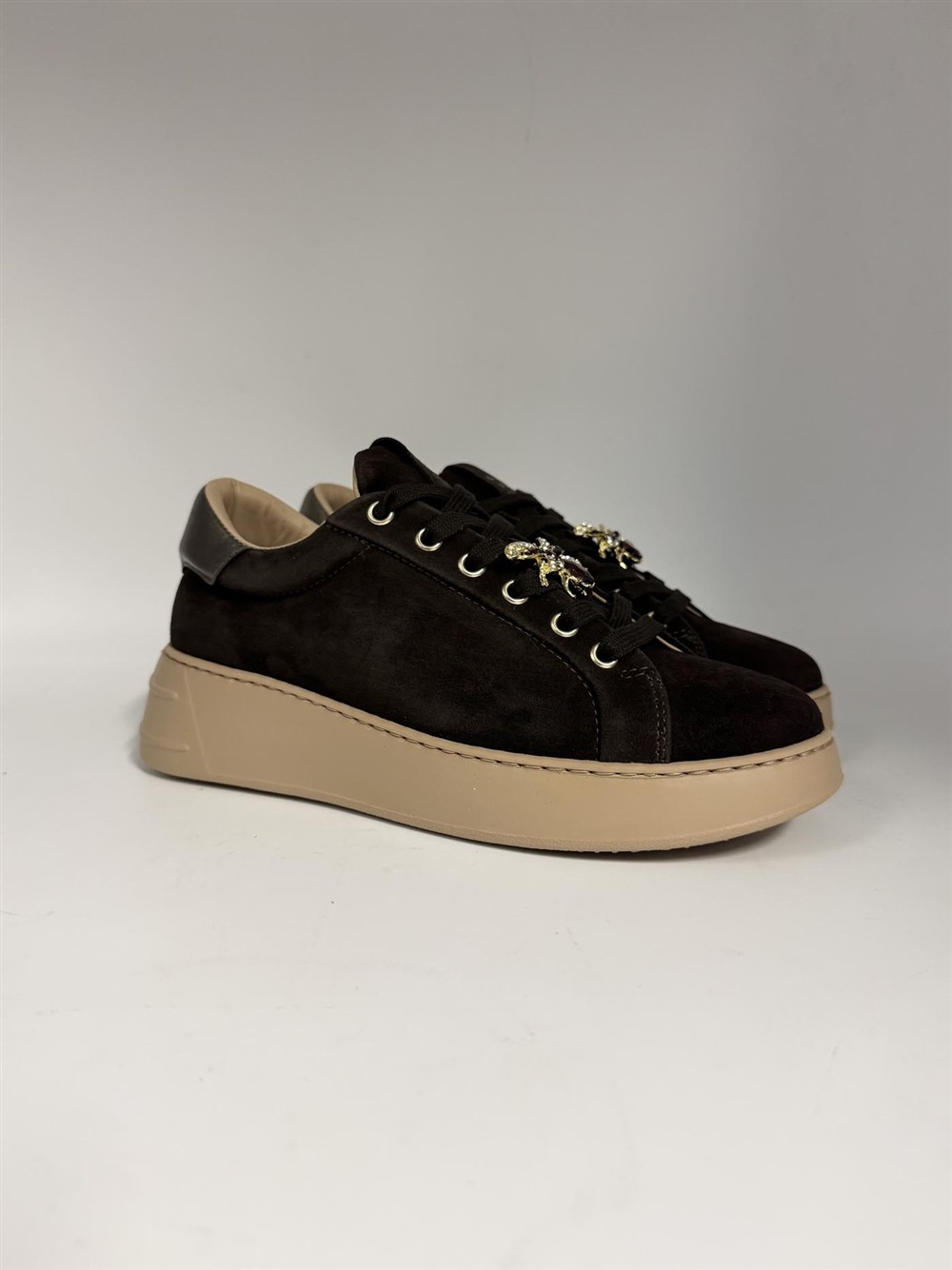Sneaker in nabuk testa di moro con accessorio farfalla