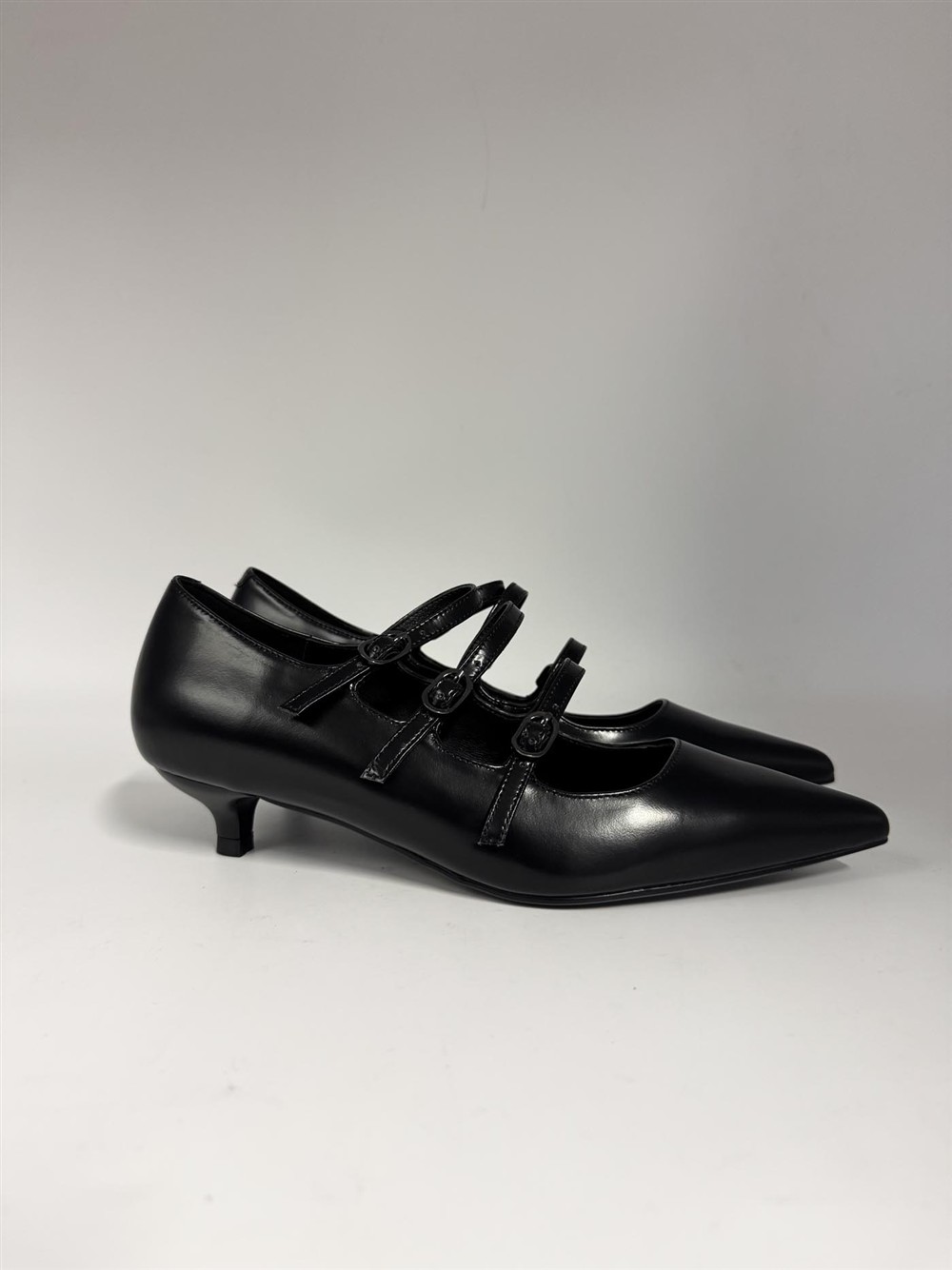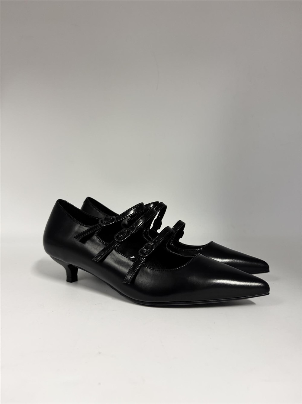 Décolleté in pelle nera con fibbiette CHICONIC