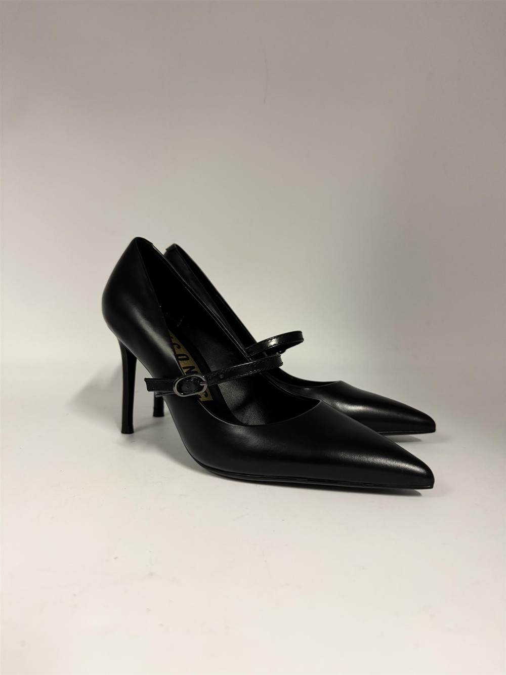 Décolleté in pelle nera con fibbietta