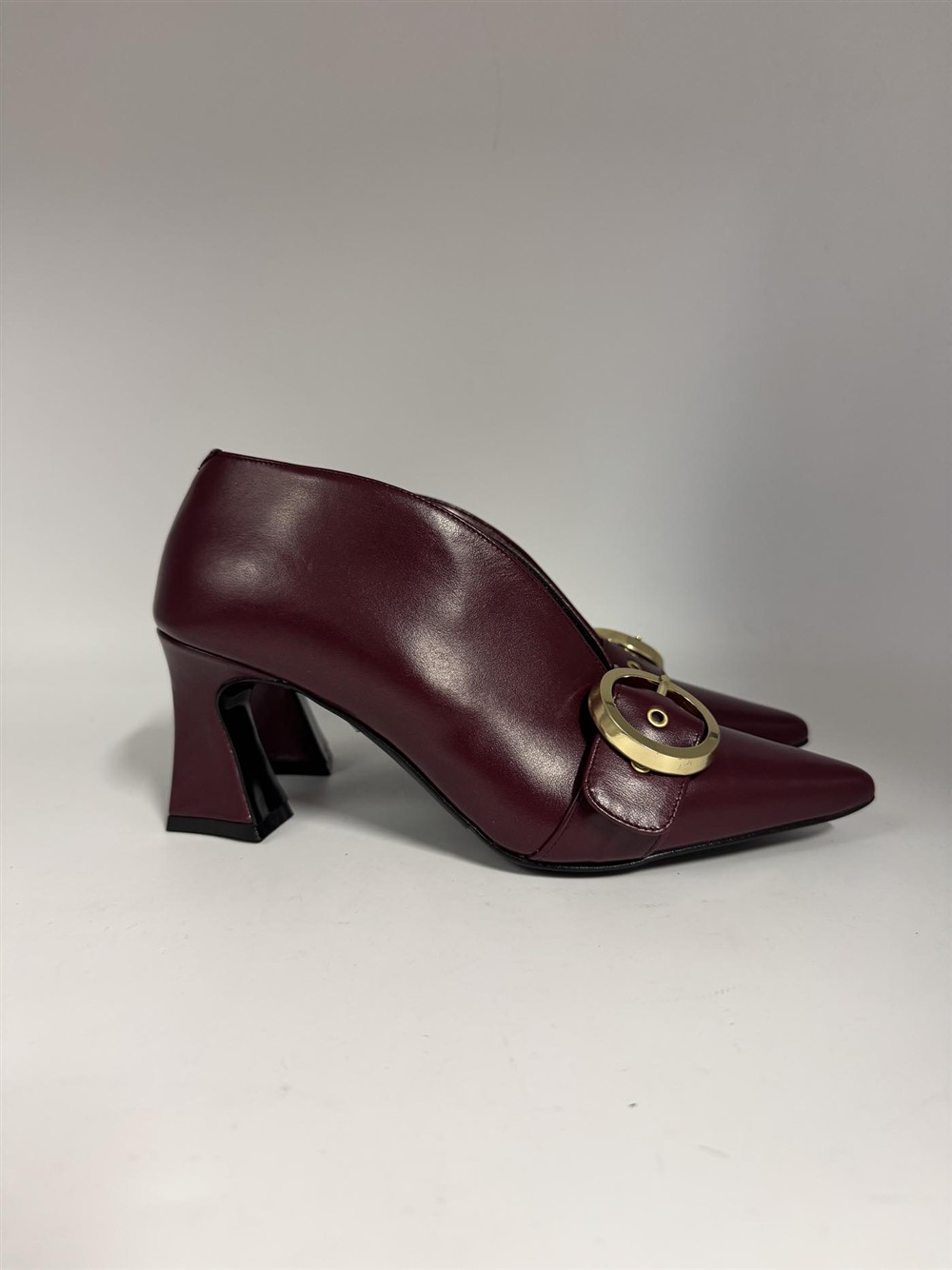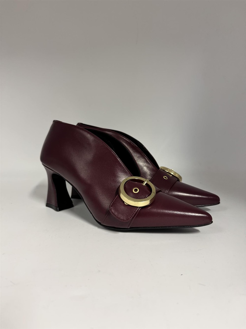 Scarpa accollata in pelle bordeaux con fibbia Albano