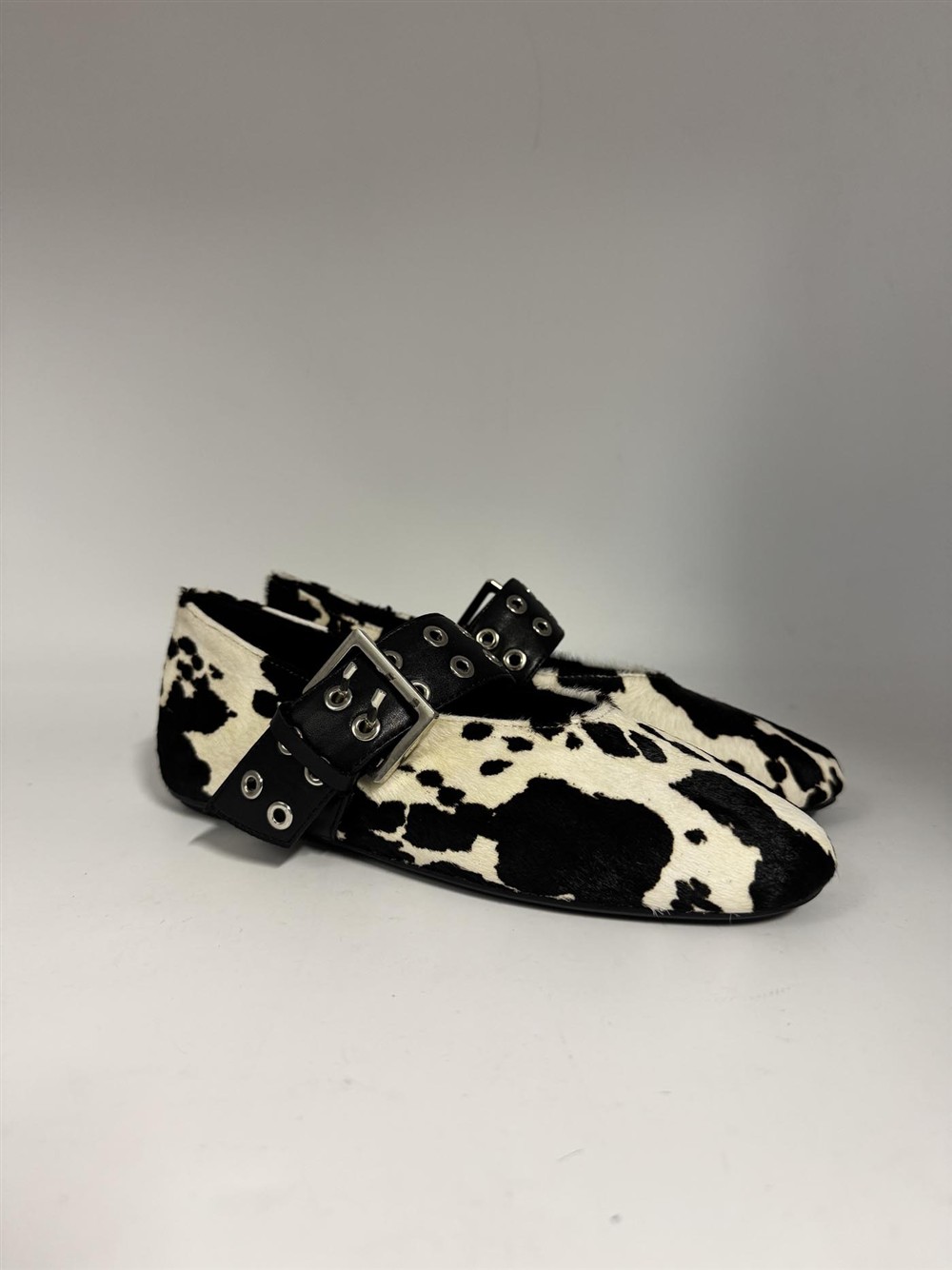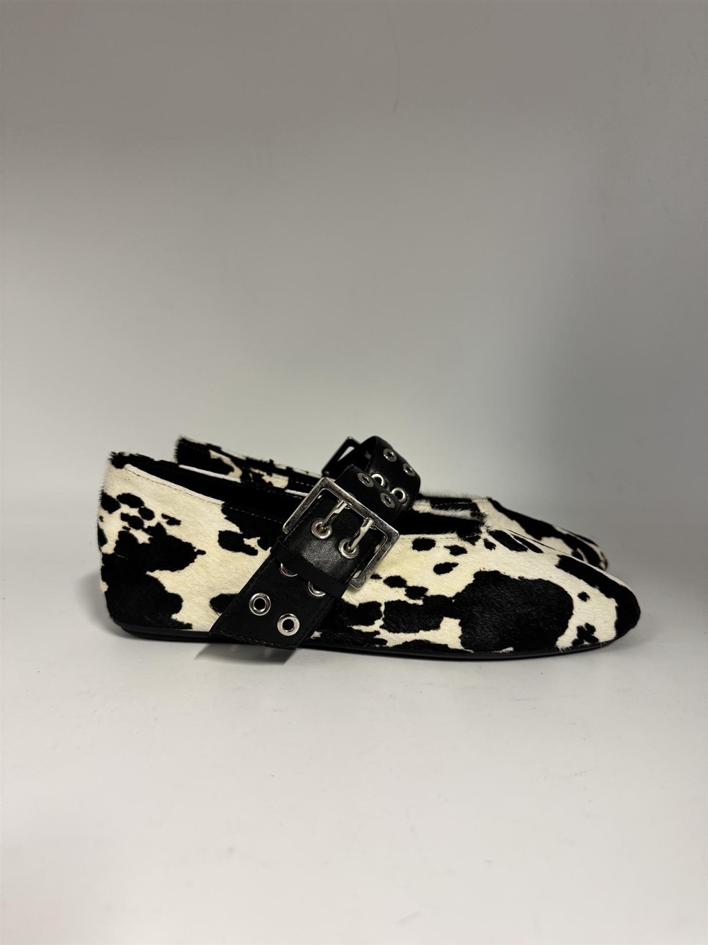 Ballerina in cavallino bianco nero con fibbia