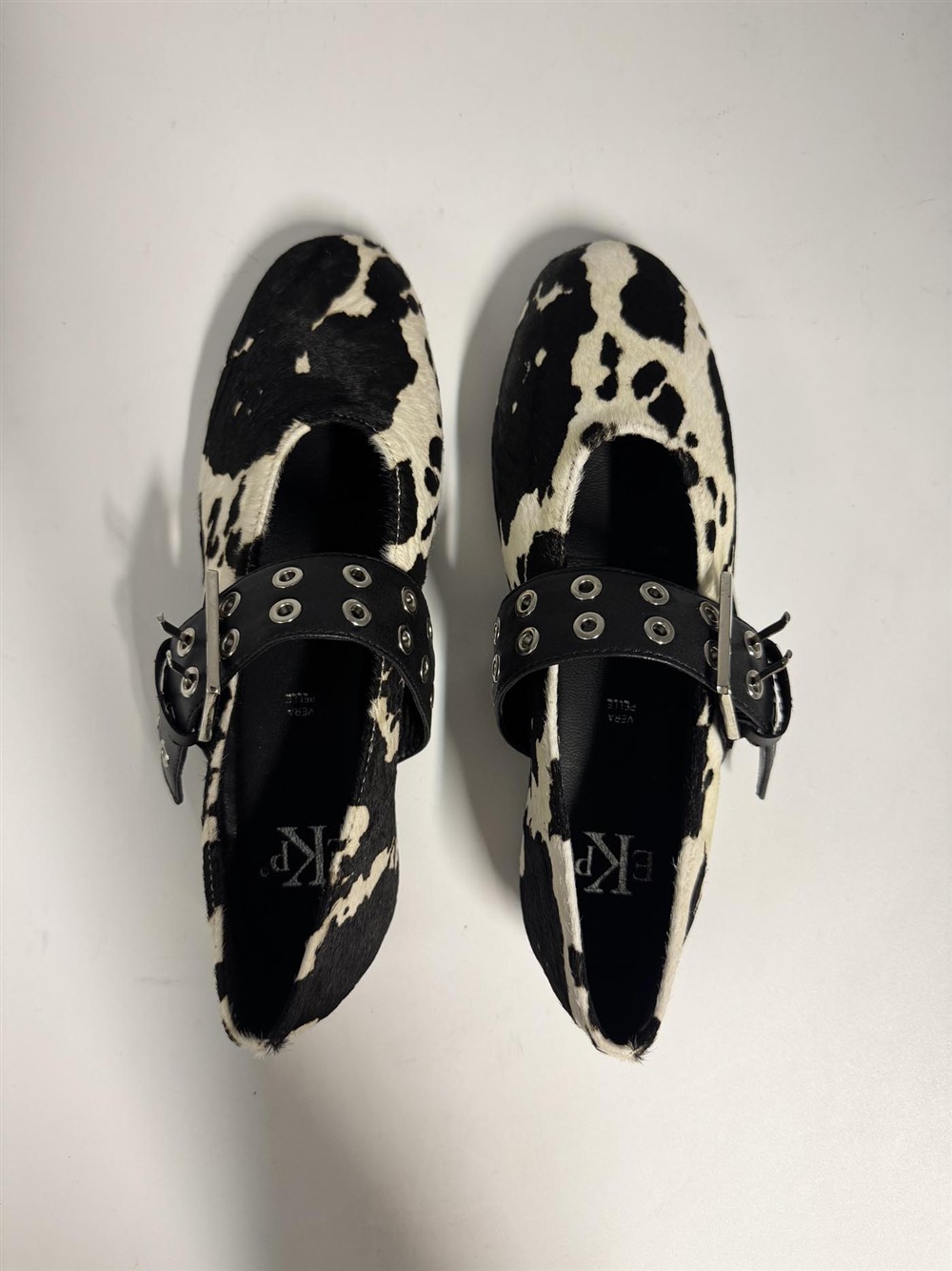 Ballerina in cavallino bianco nero con fibbia EKP collection