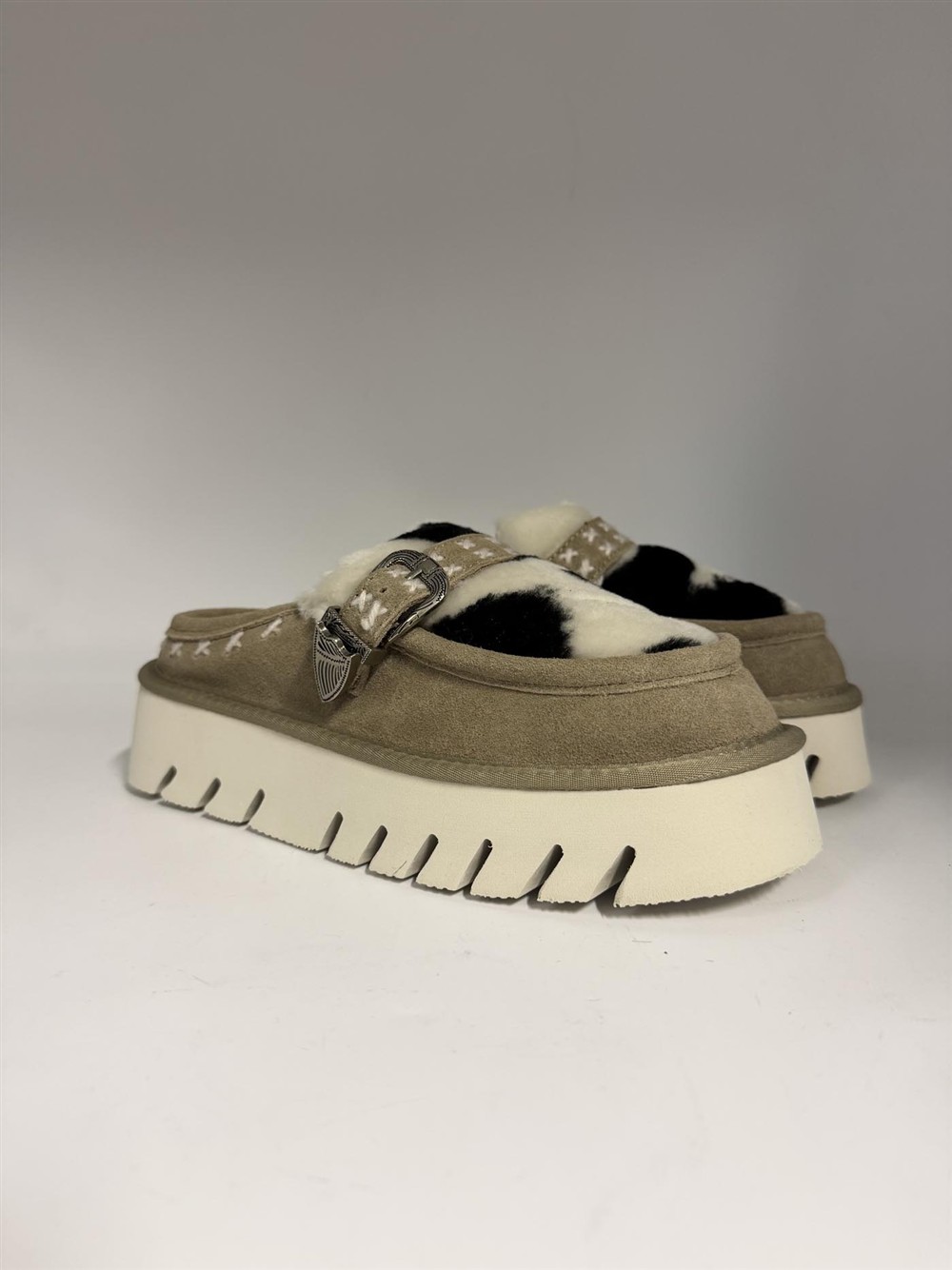 Cibattone maxi in camoscio e pelliccia con fibbia EKP collection