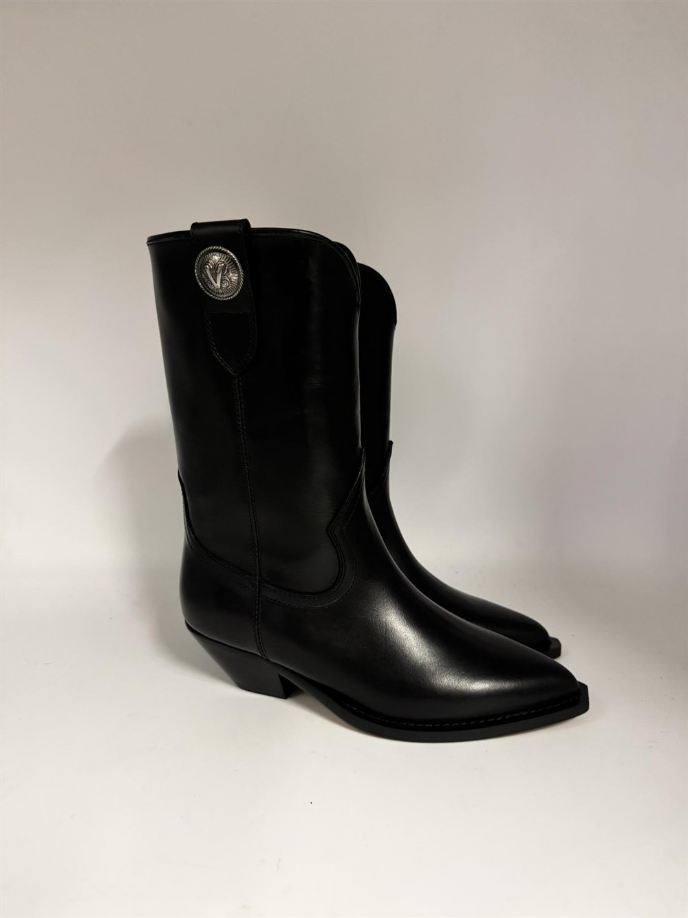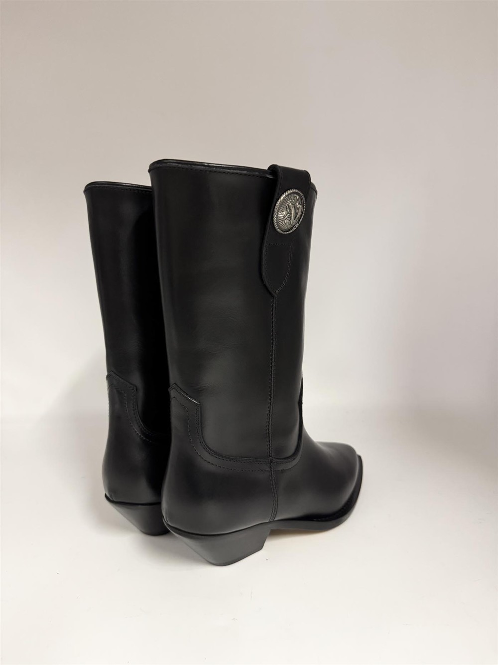 Texano in pelle nera con accessorio silver Via Roma 15