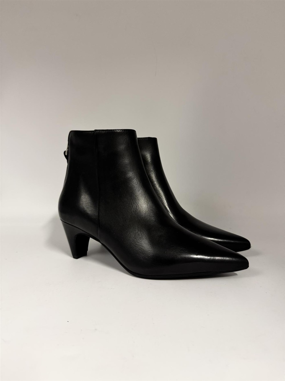 Tronchetto in pelle nera con tacchetto