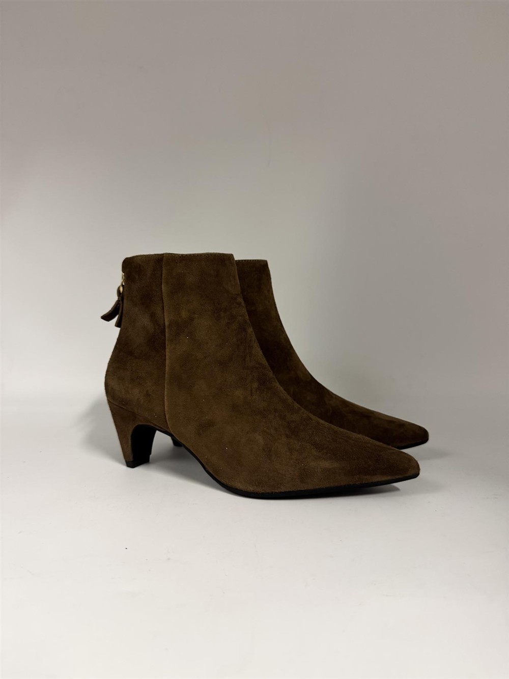 Tronchetto in camoscio cuoio con tacchetto