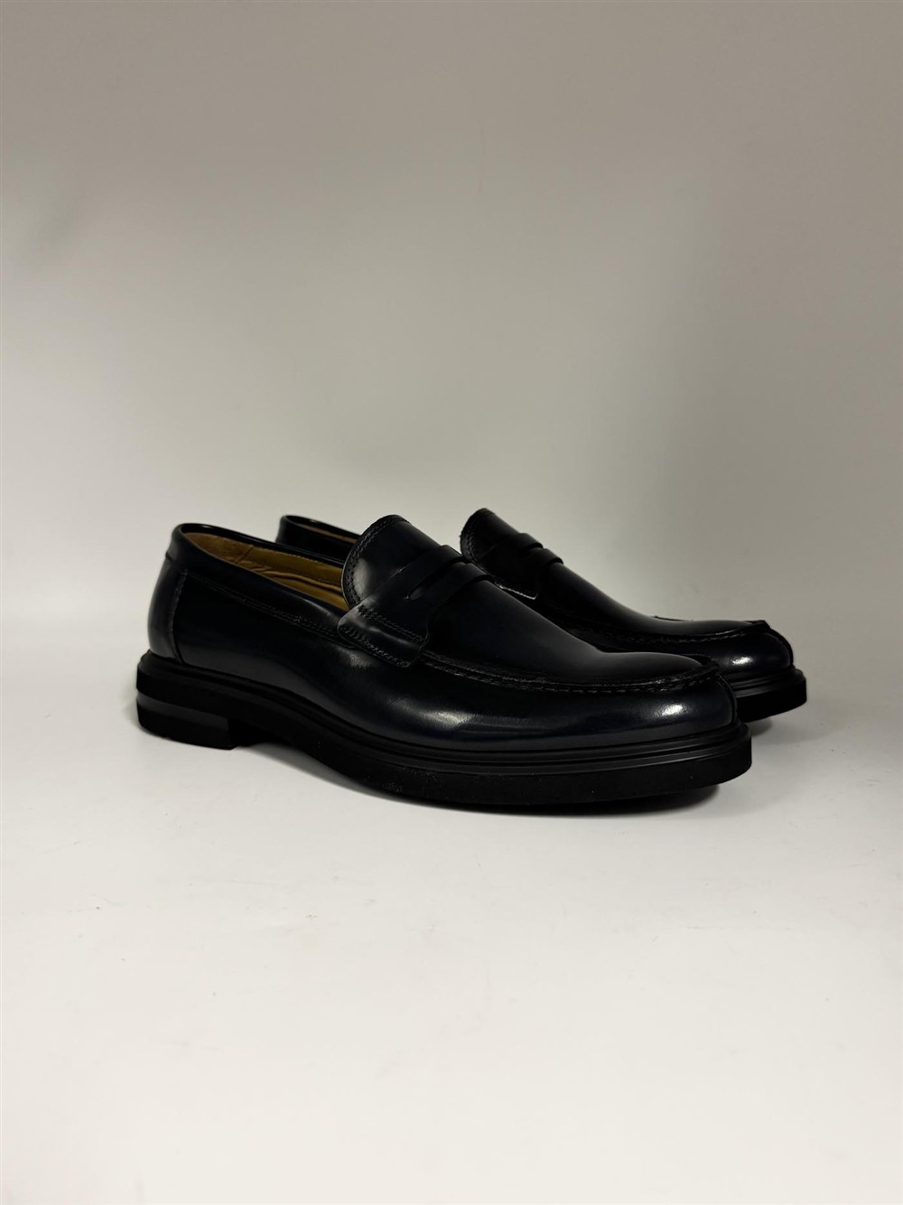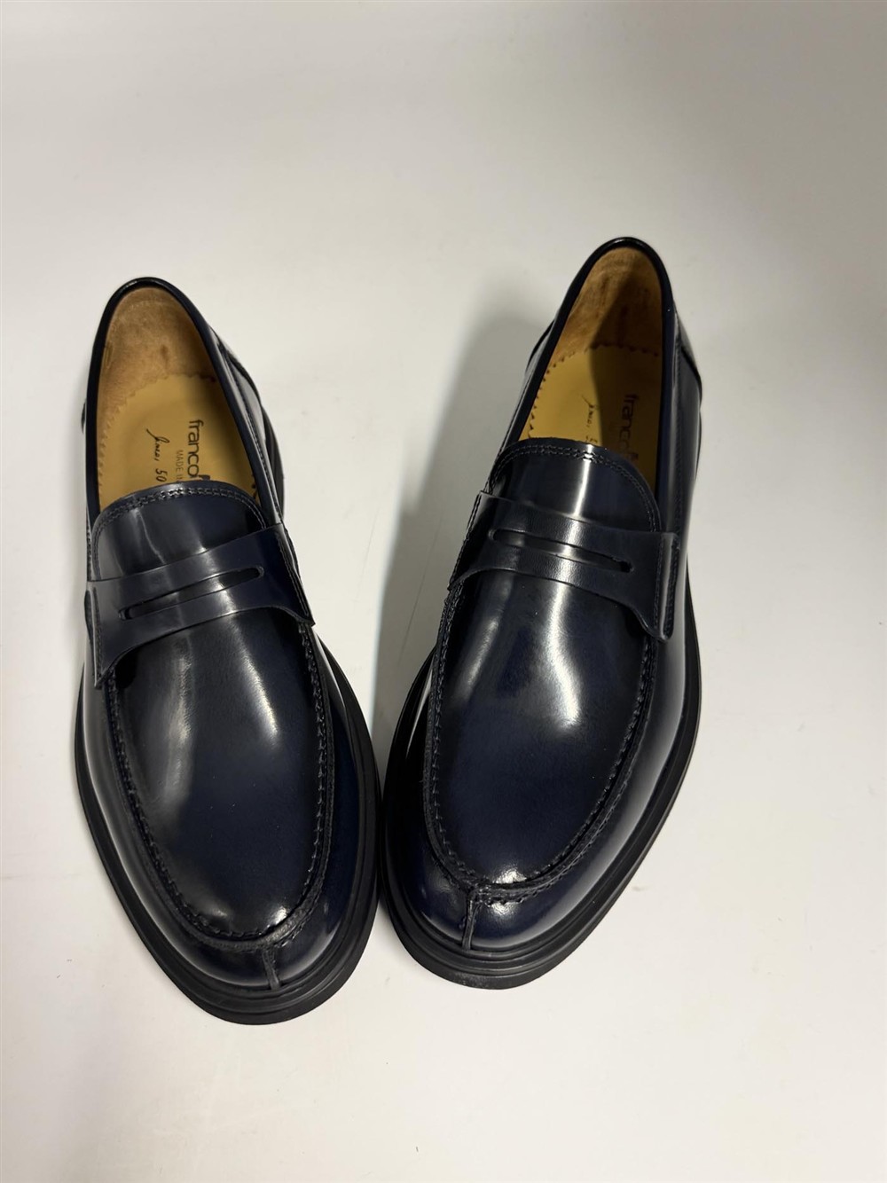 Mocassino in pelle spazzolata blu con fondo gomma Franco Fedele