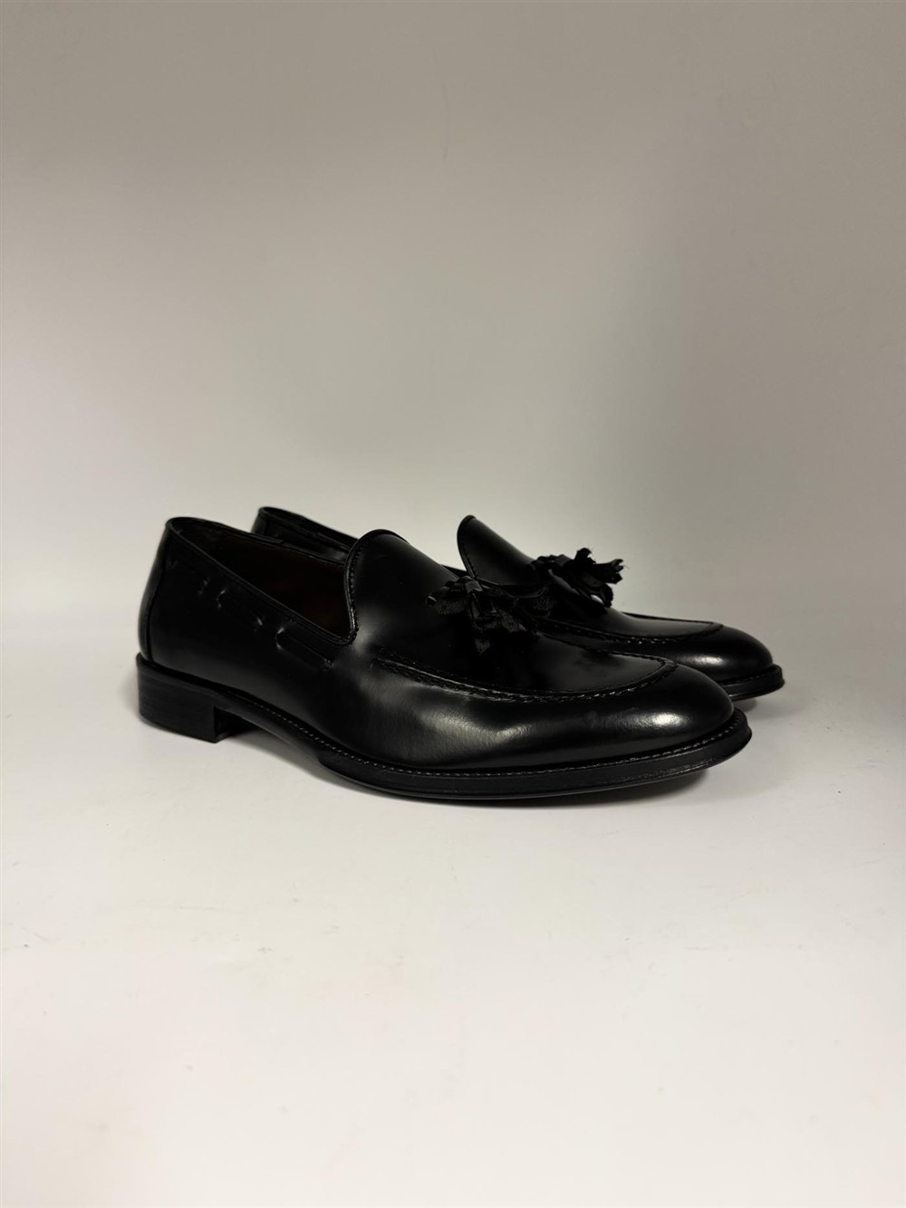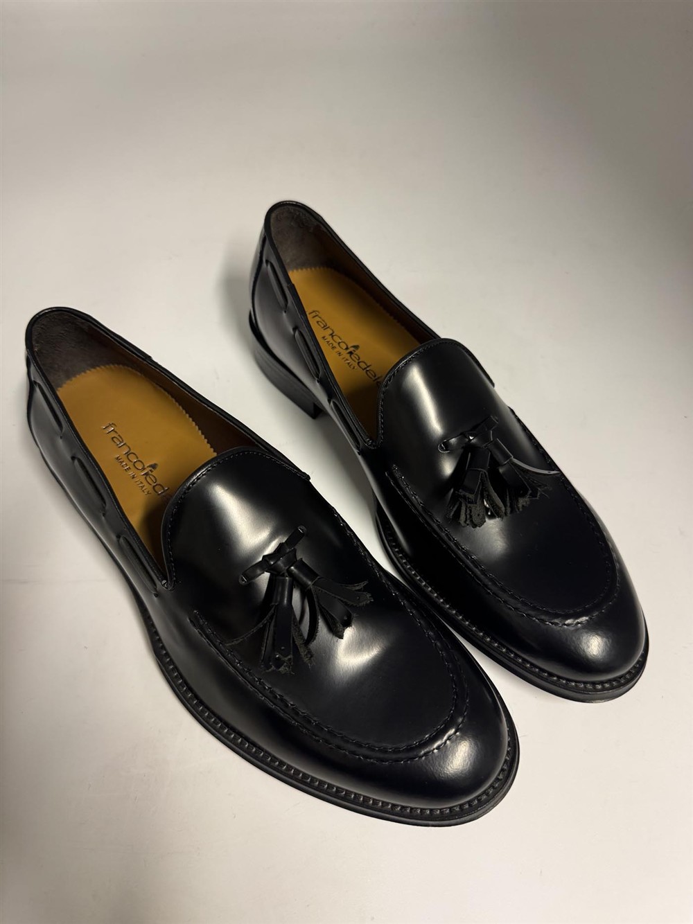 Mocassino in pelle spazzolata nera con nappina Franco Fedele