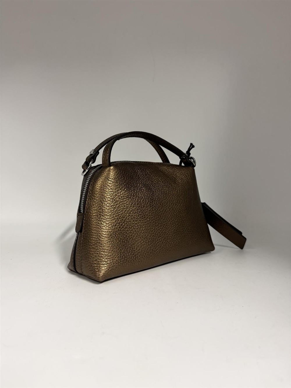 Borsa Alifa piccola in pelle laminata bronzo