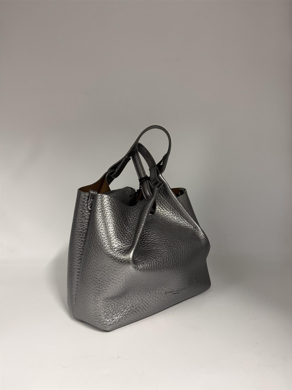 Borsa media Dua in pelle laminata argento Gianni Chiarini