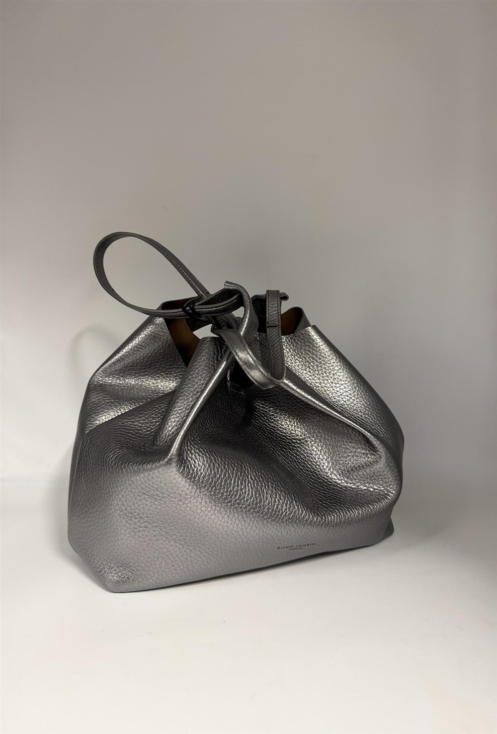 Borsa Maxi Dua in pelle laminata argento Gianni Chiarini
