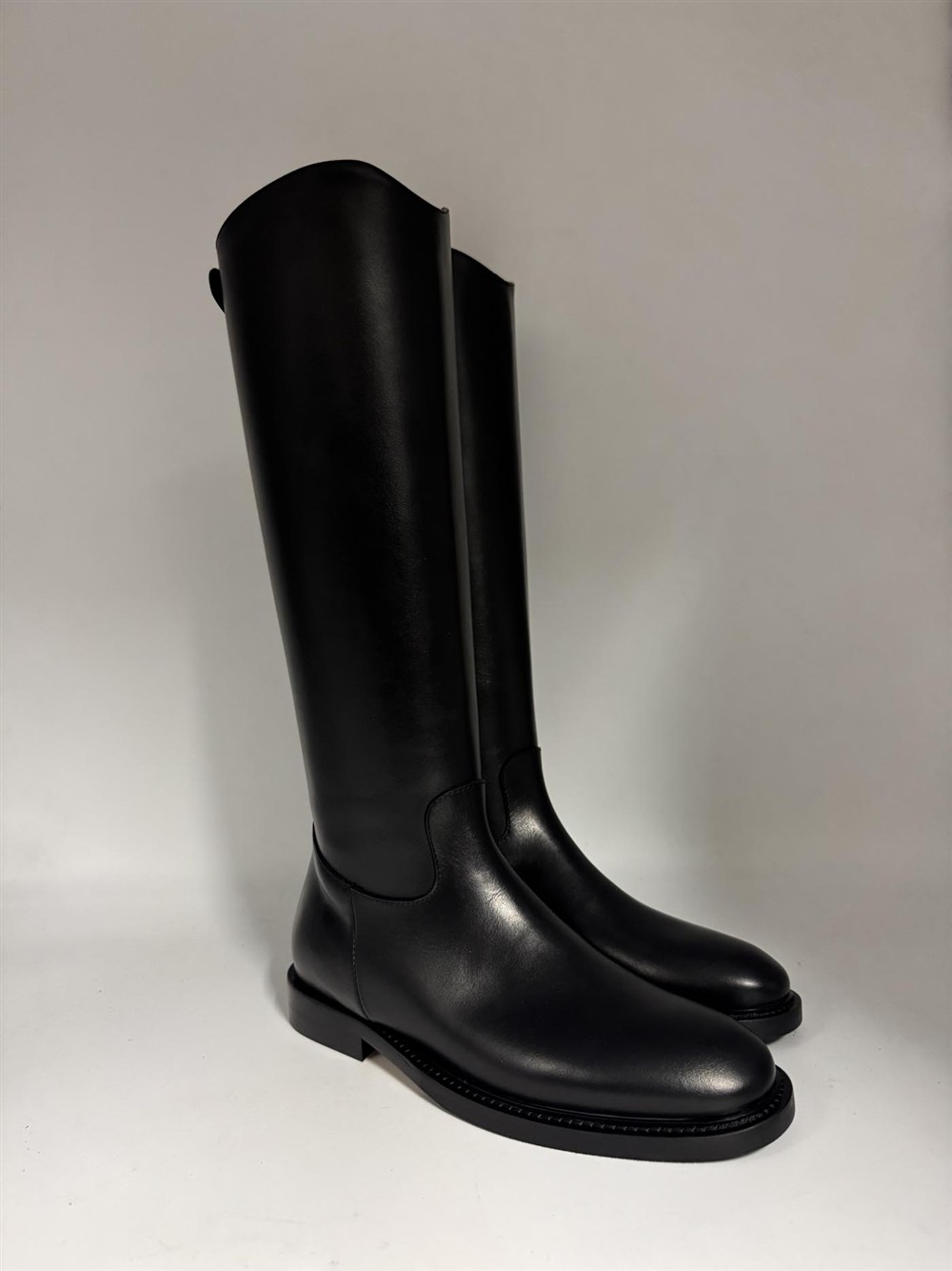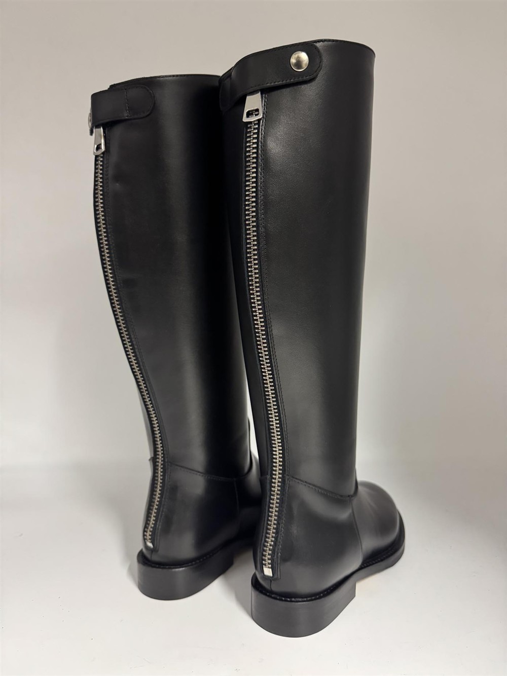 Stivale cavallerizza in pelle nera con cerniera sul retro
