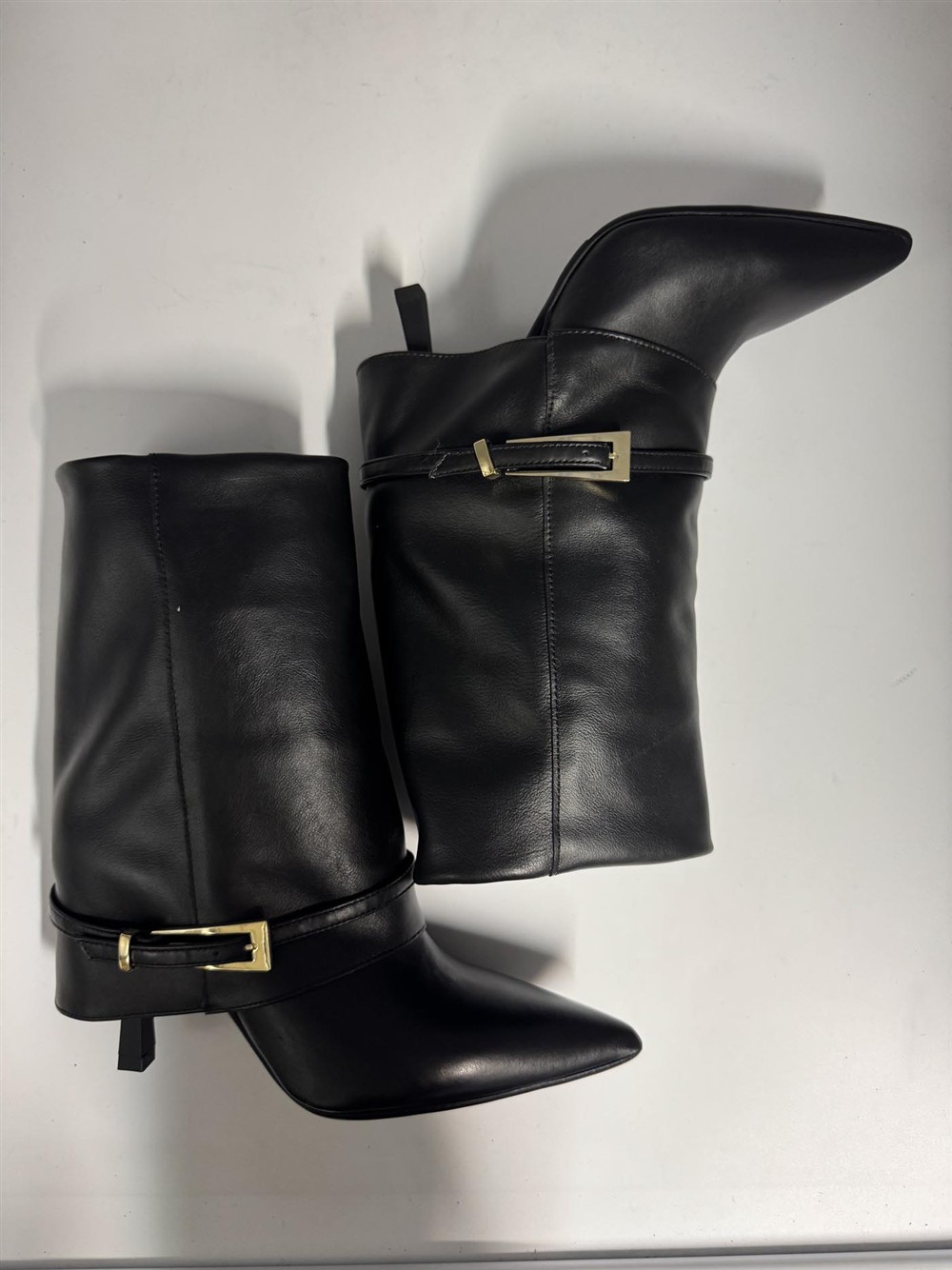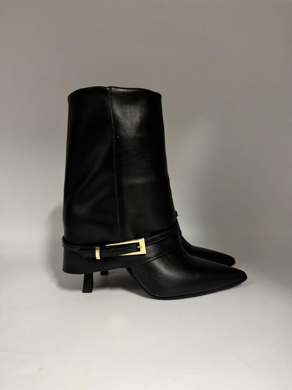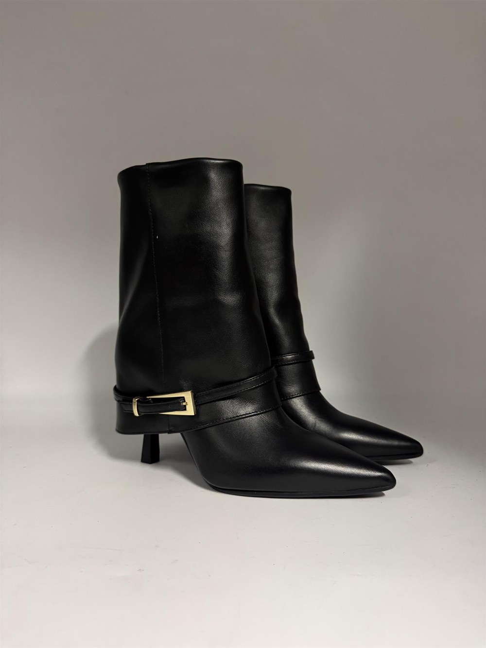 Tronchetto in pelle nera con fibbia oro Gisél Moiré