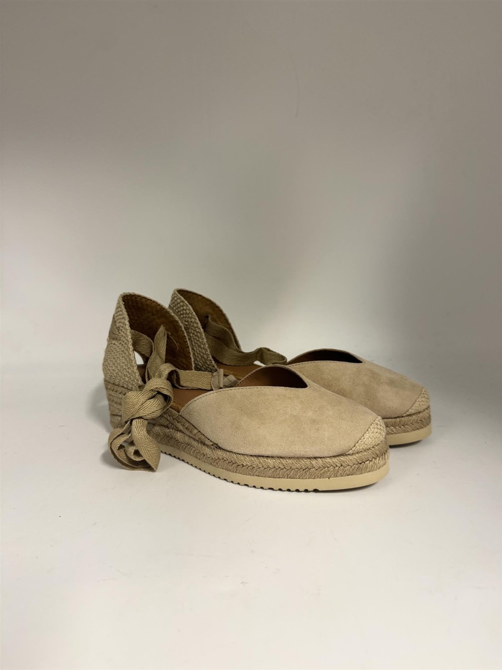Espadrilles con lacci in camoscio beige