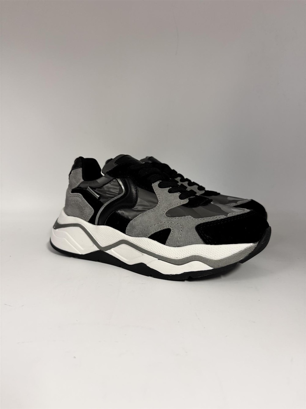 Sneaker in camoscio e tessuto nero grigio