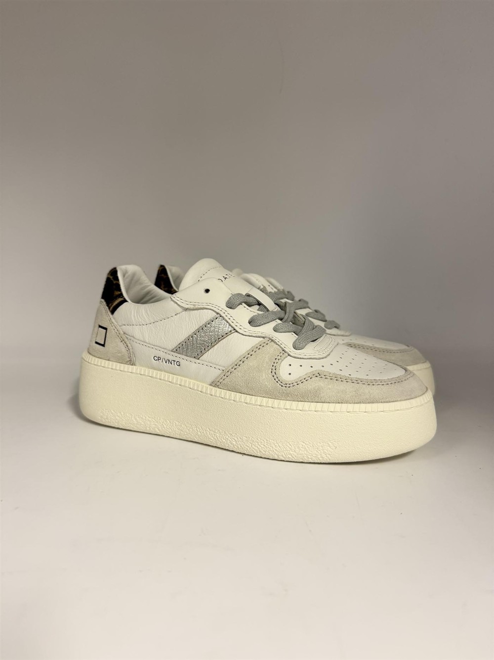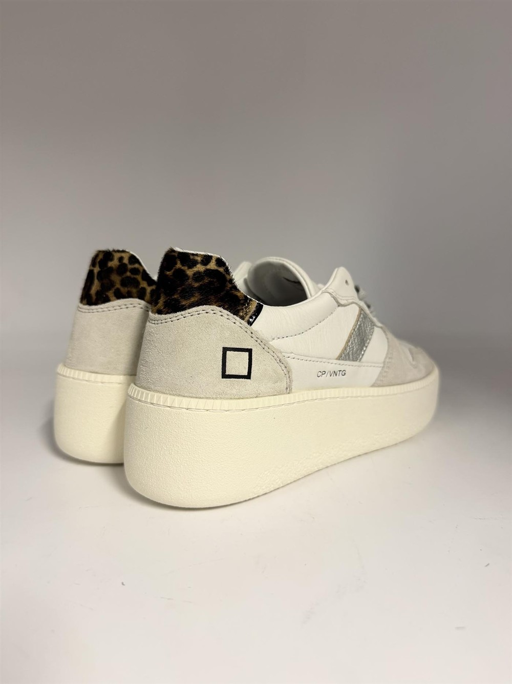 Sneaker in pelle bianca con talloncino animalier D.A.T.E.