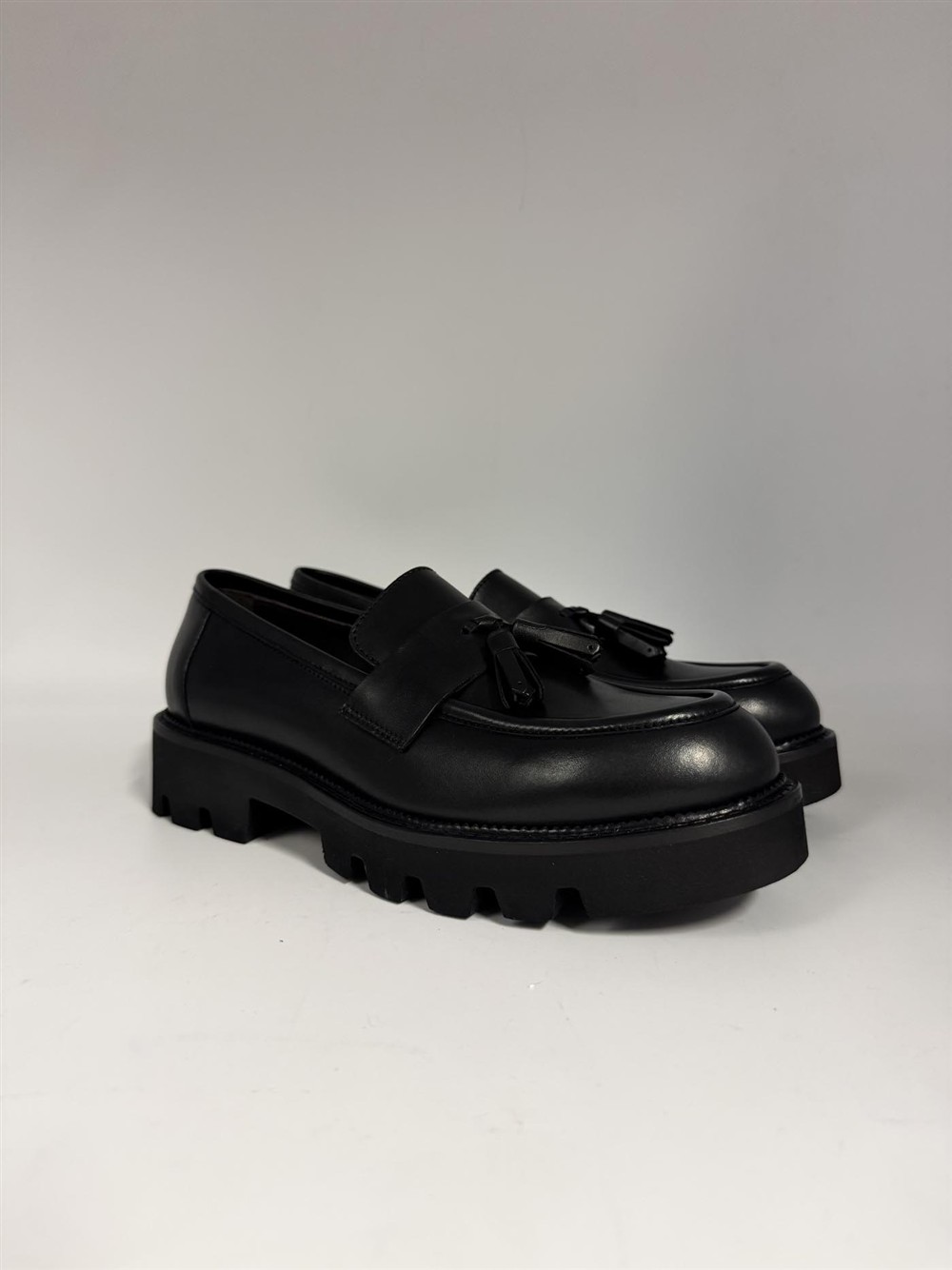 Mocassino in pelle nera con nappina
