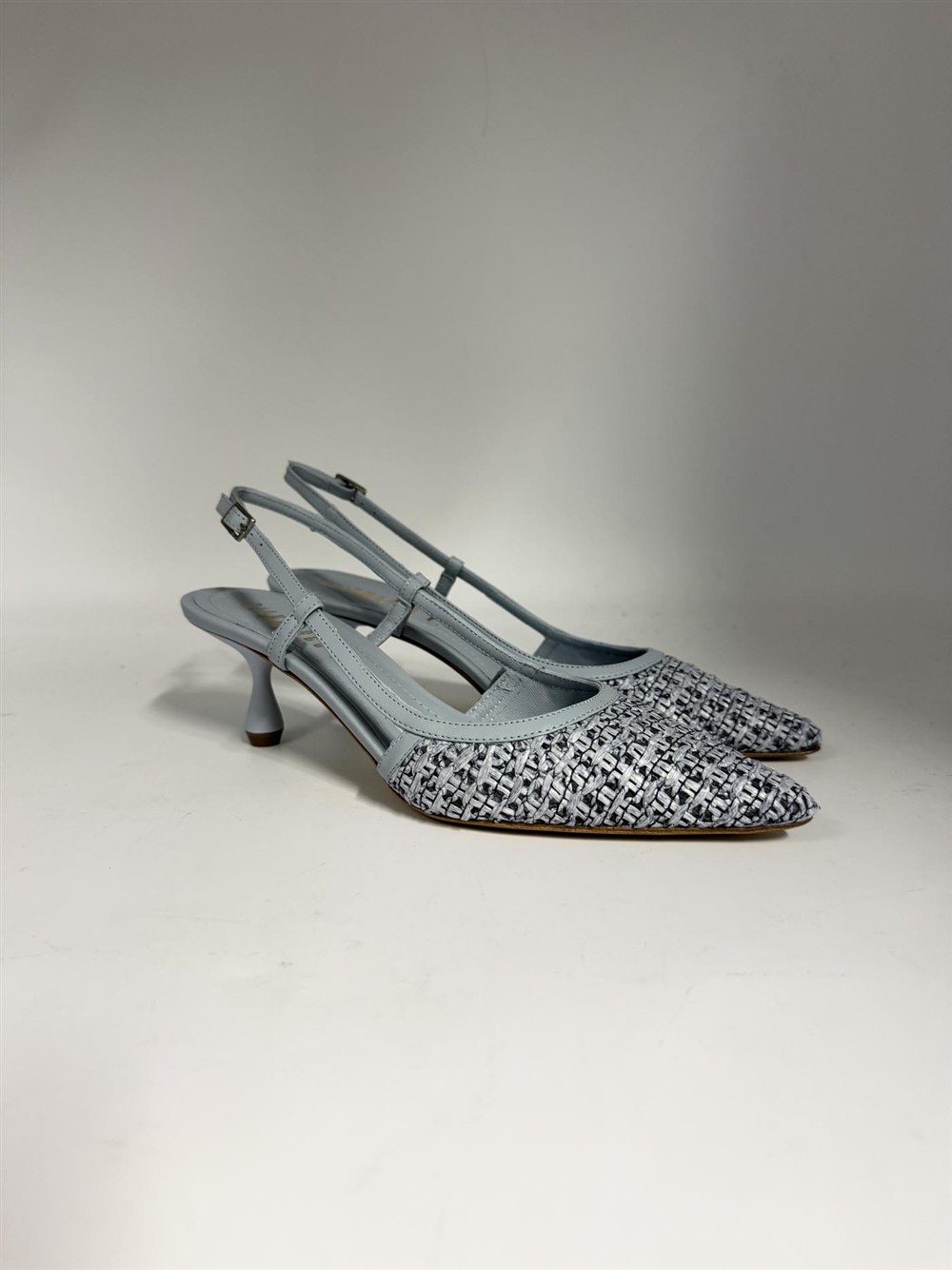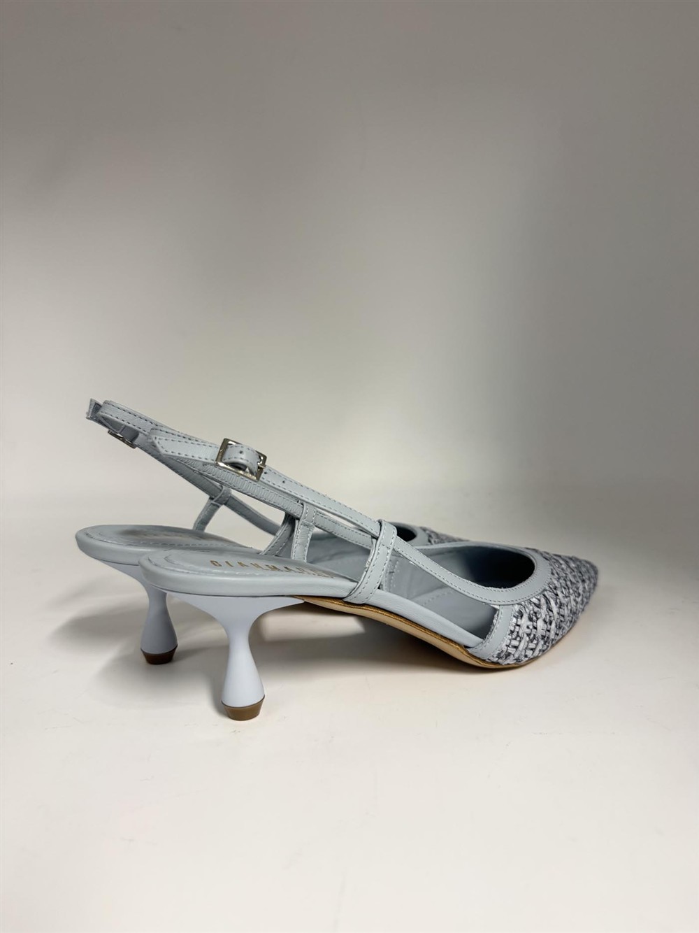 Slingback in pelle e rafia cielo Gianmarco F.