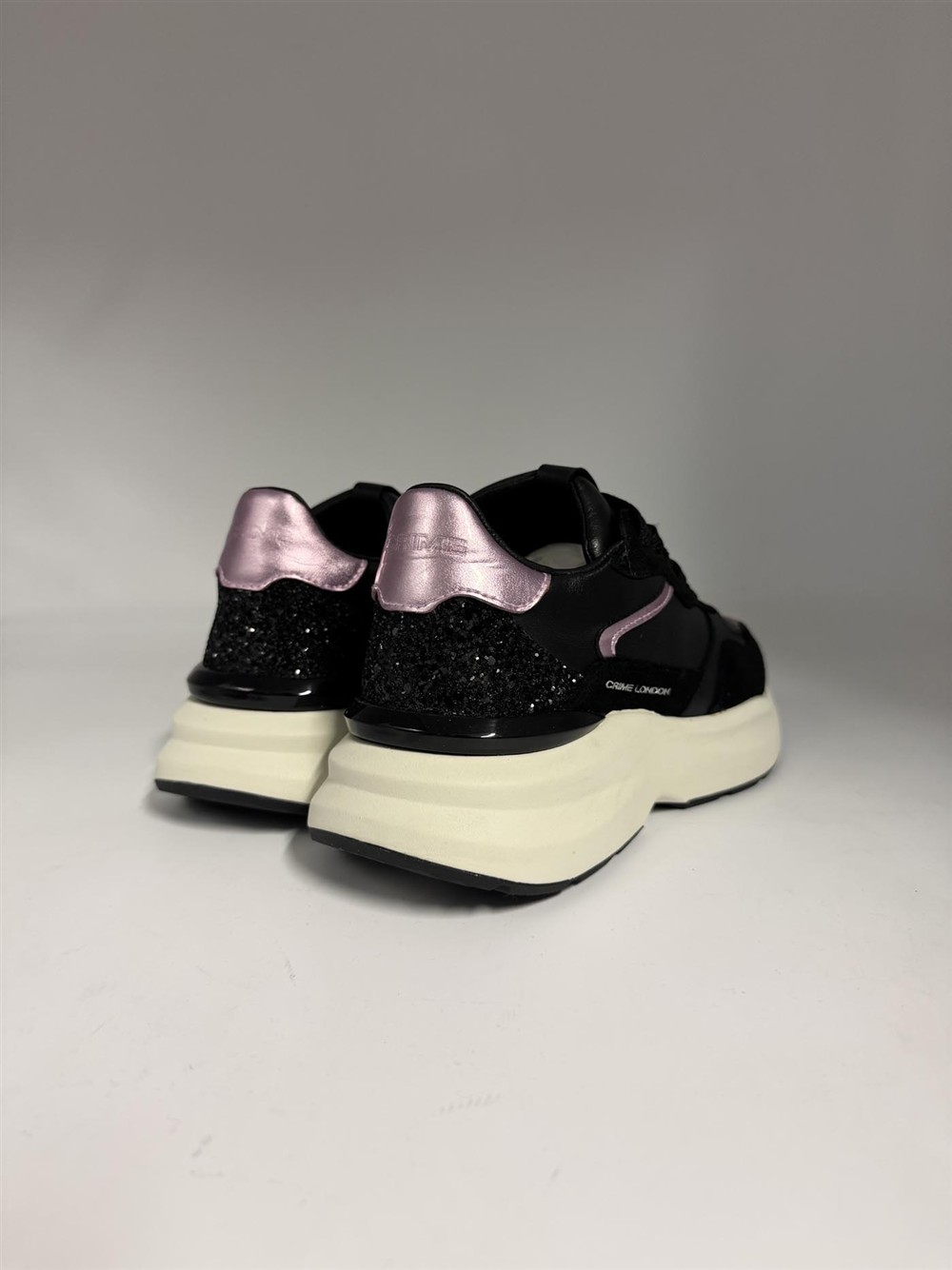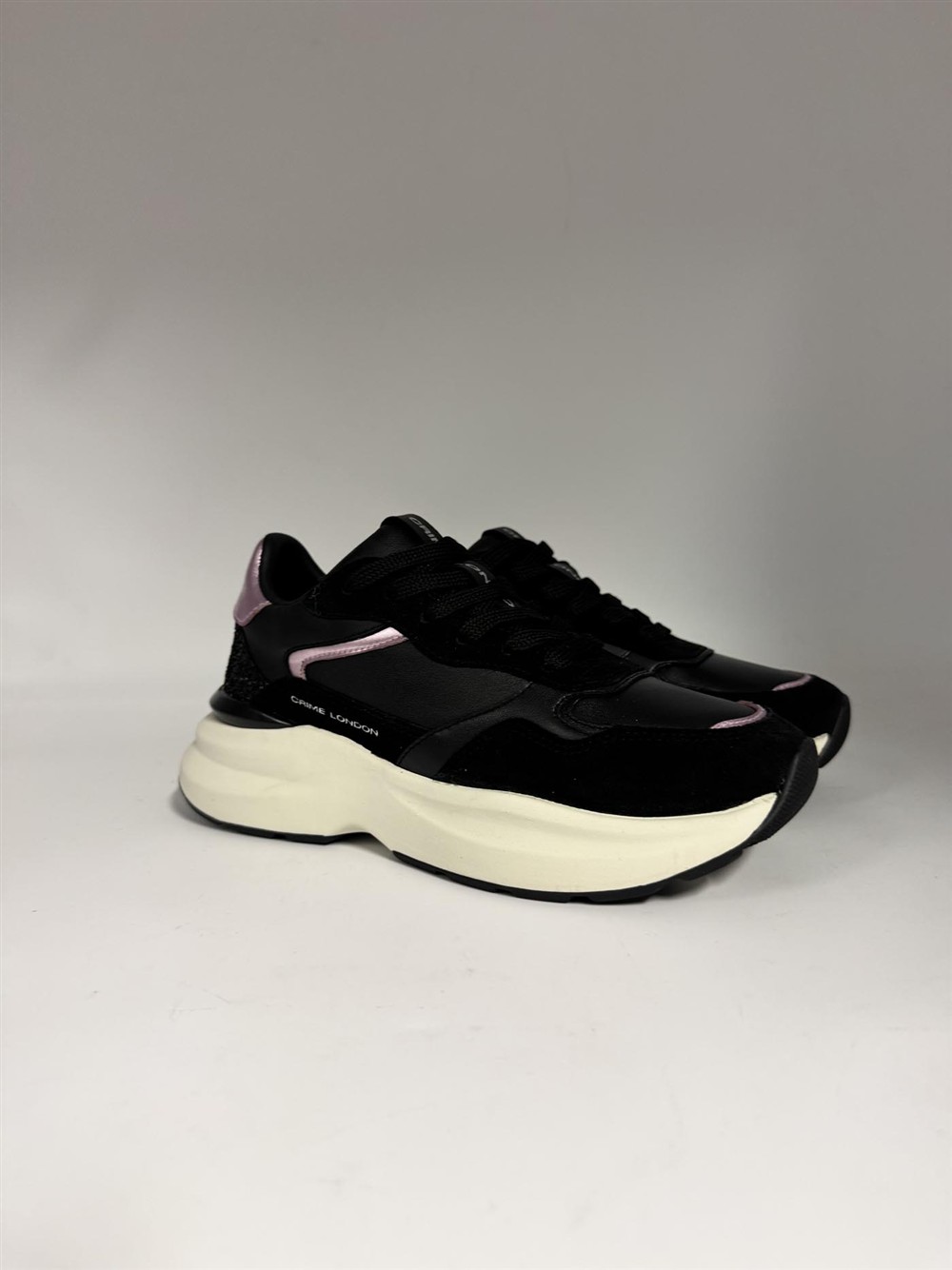 Sneaker in pelle nera con dettagli rosa Crime London
