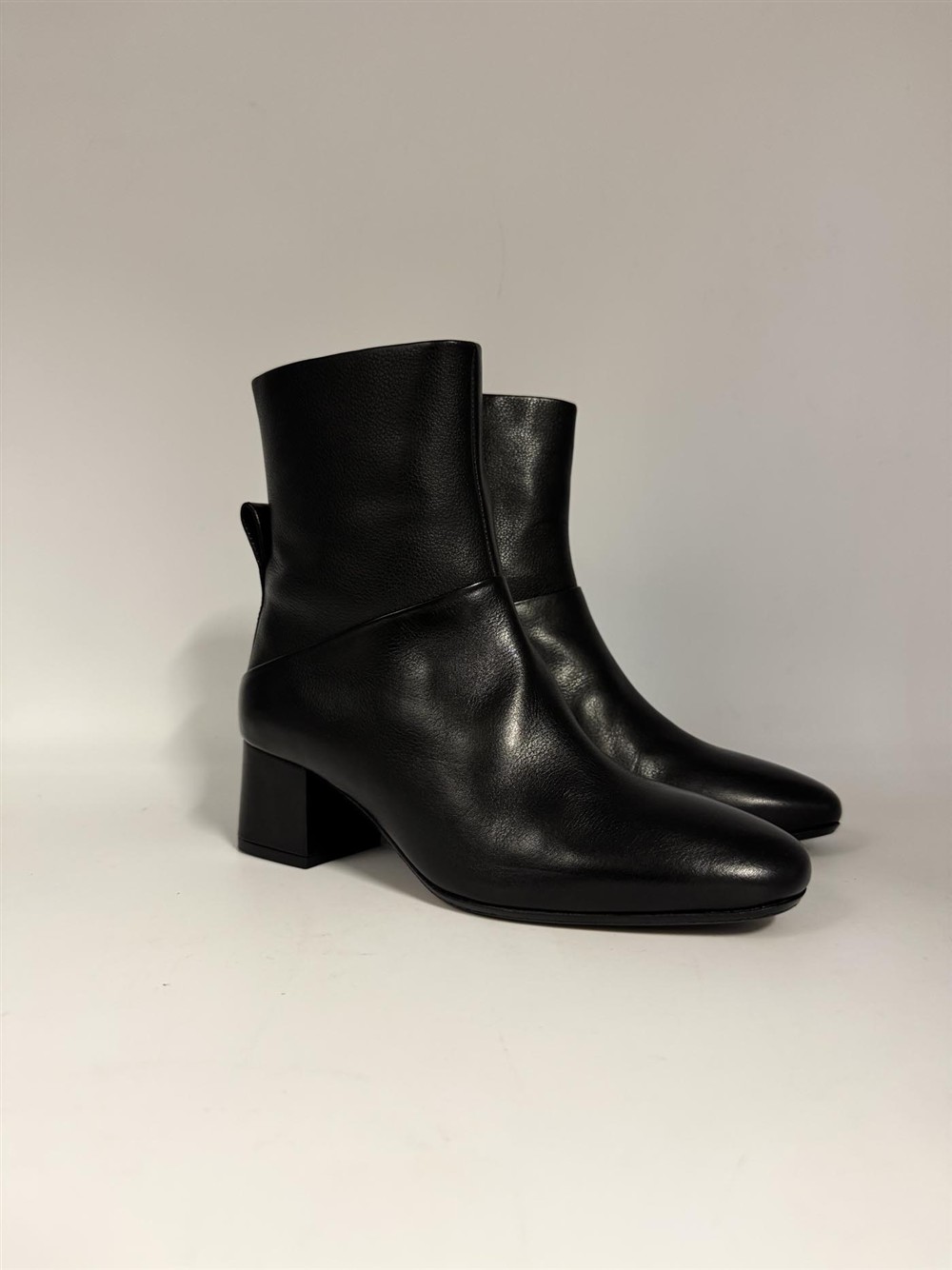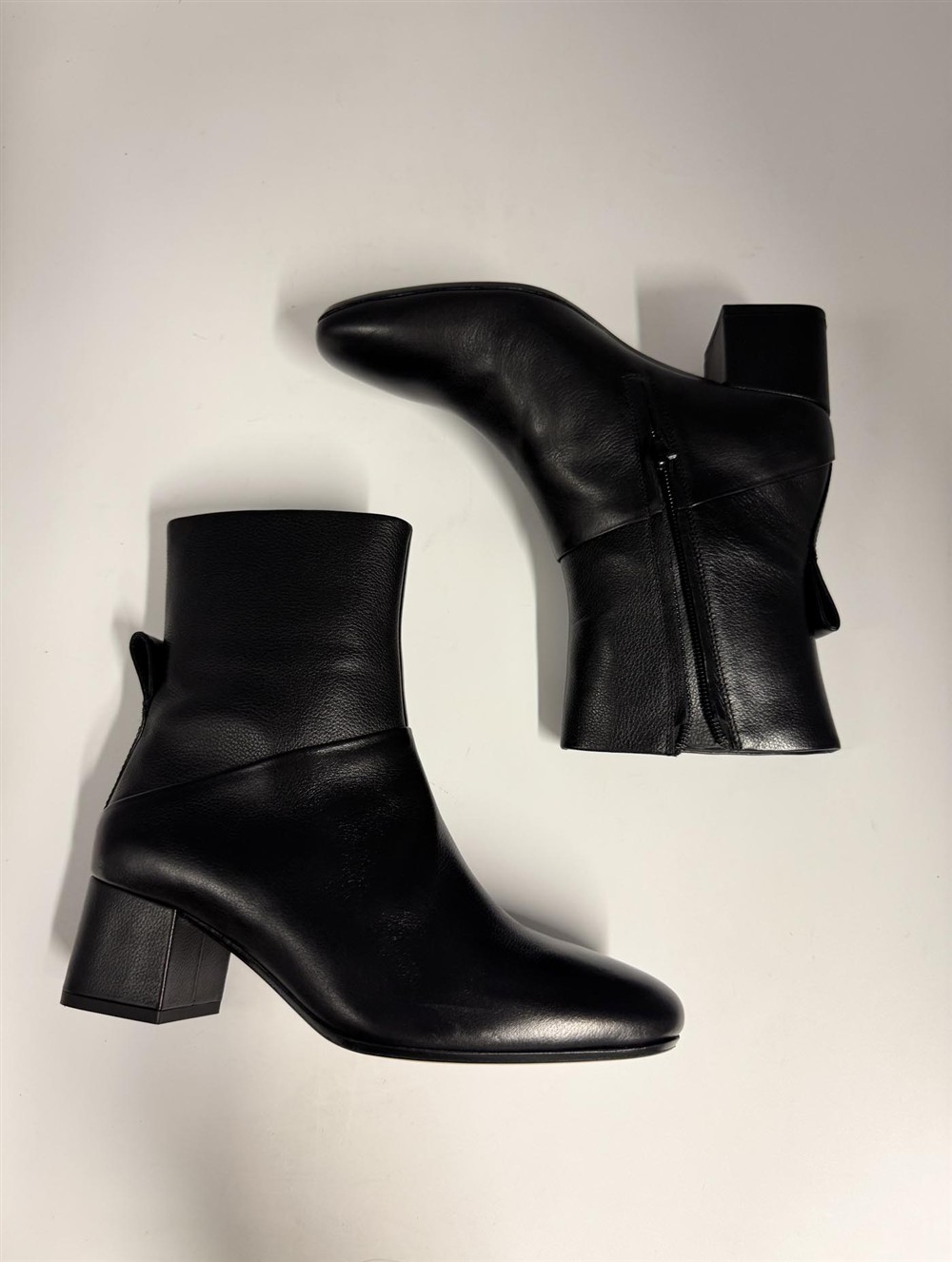 Tronchetto in pelle nera con cerniera sul retro