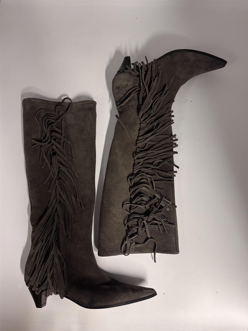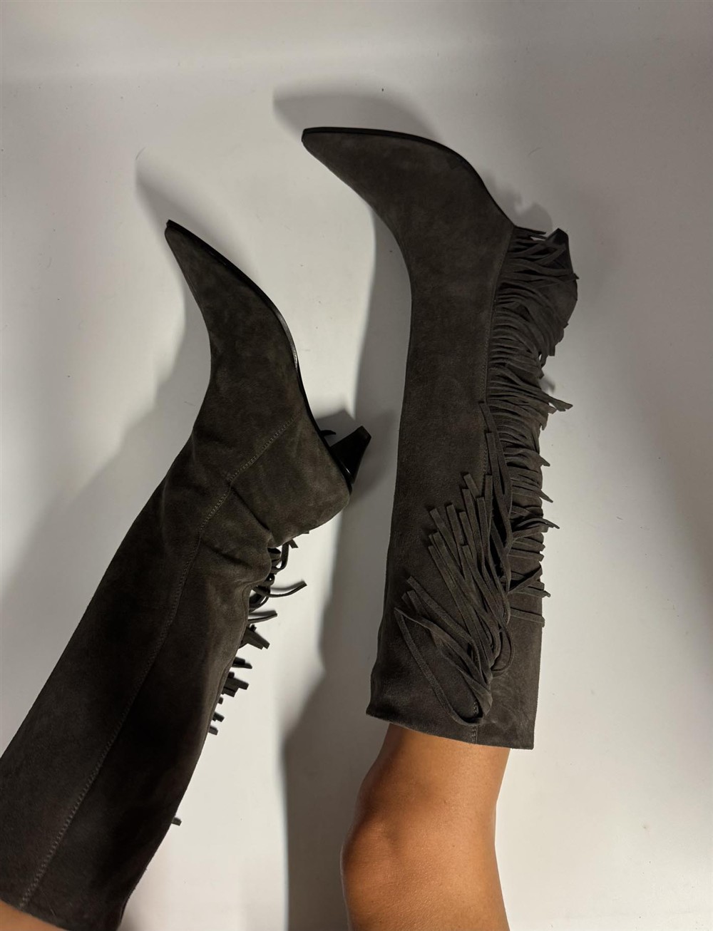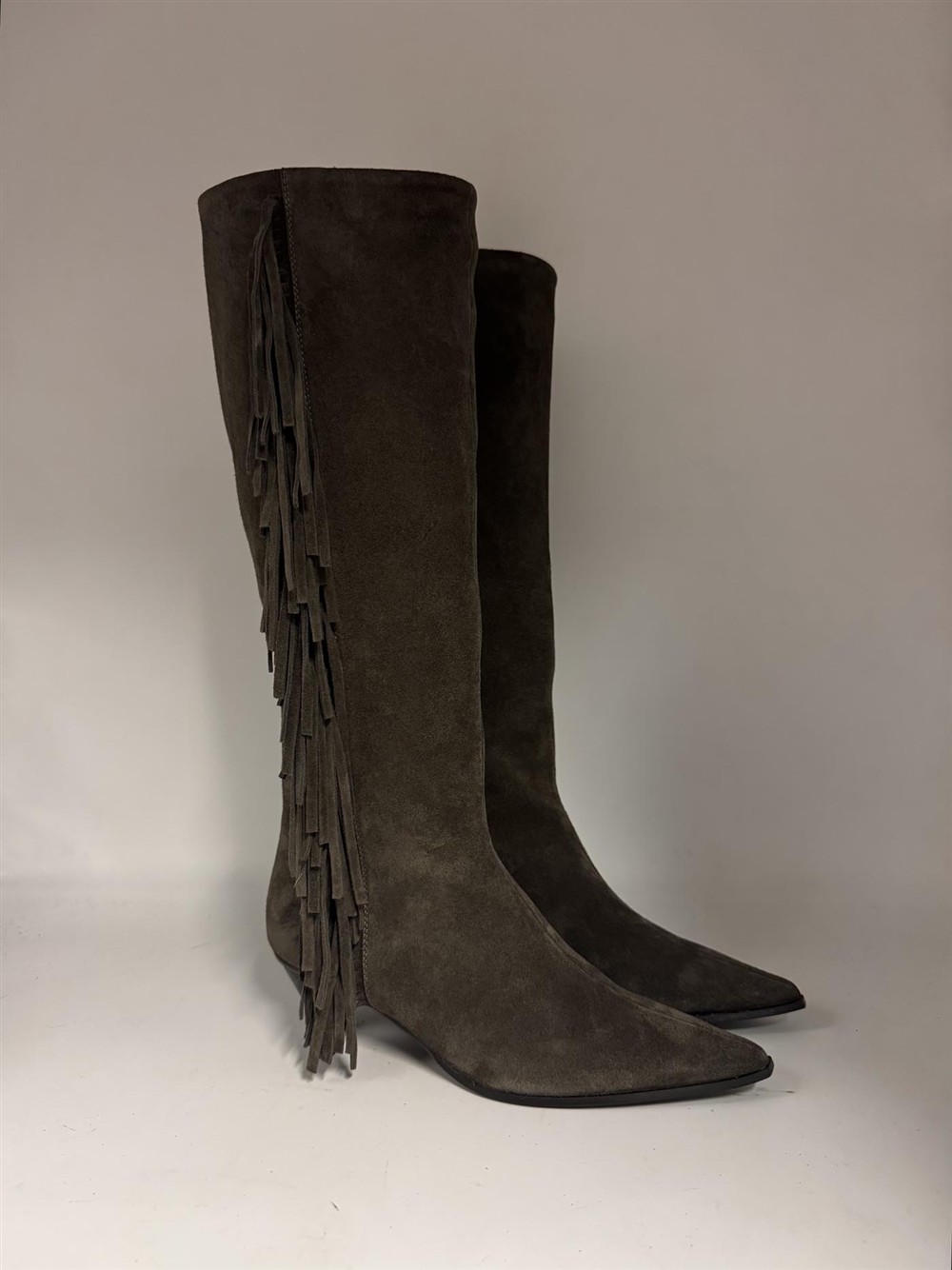 Stivale con frange in camoscio marrone