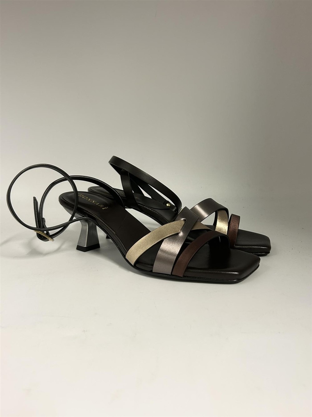 Sandalo in pelle nera con fasce multi e tacco DONNARI’