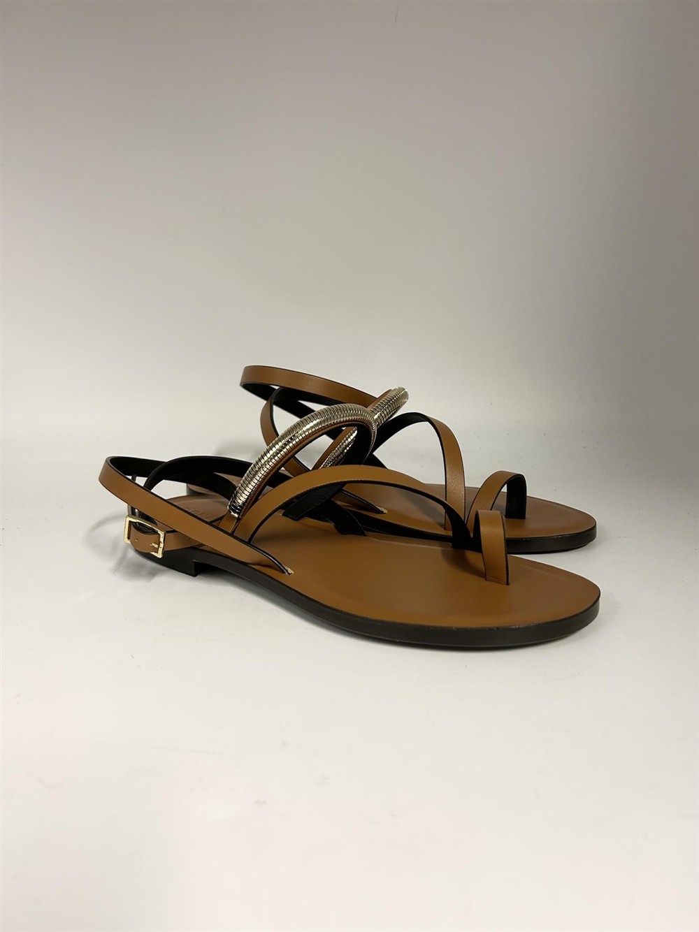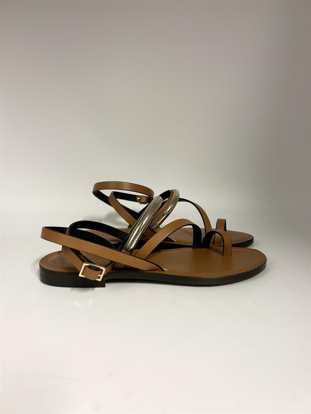 Sandalo basso in pelle cuoio con accessorio oro DONNARI’