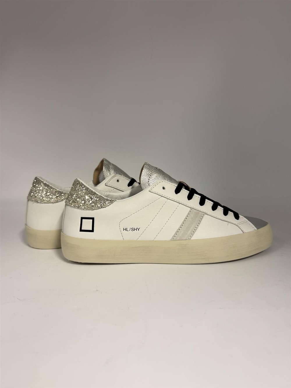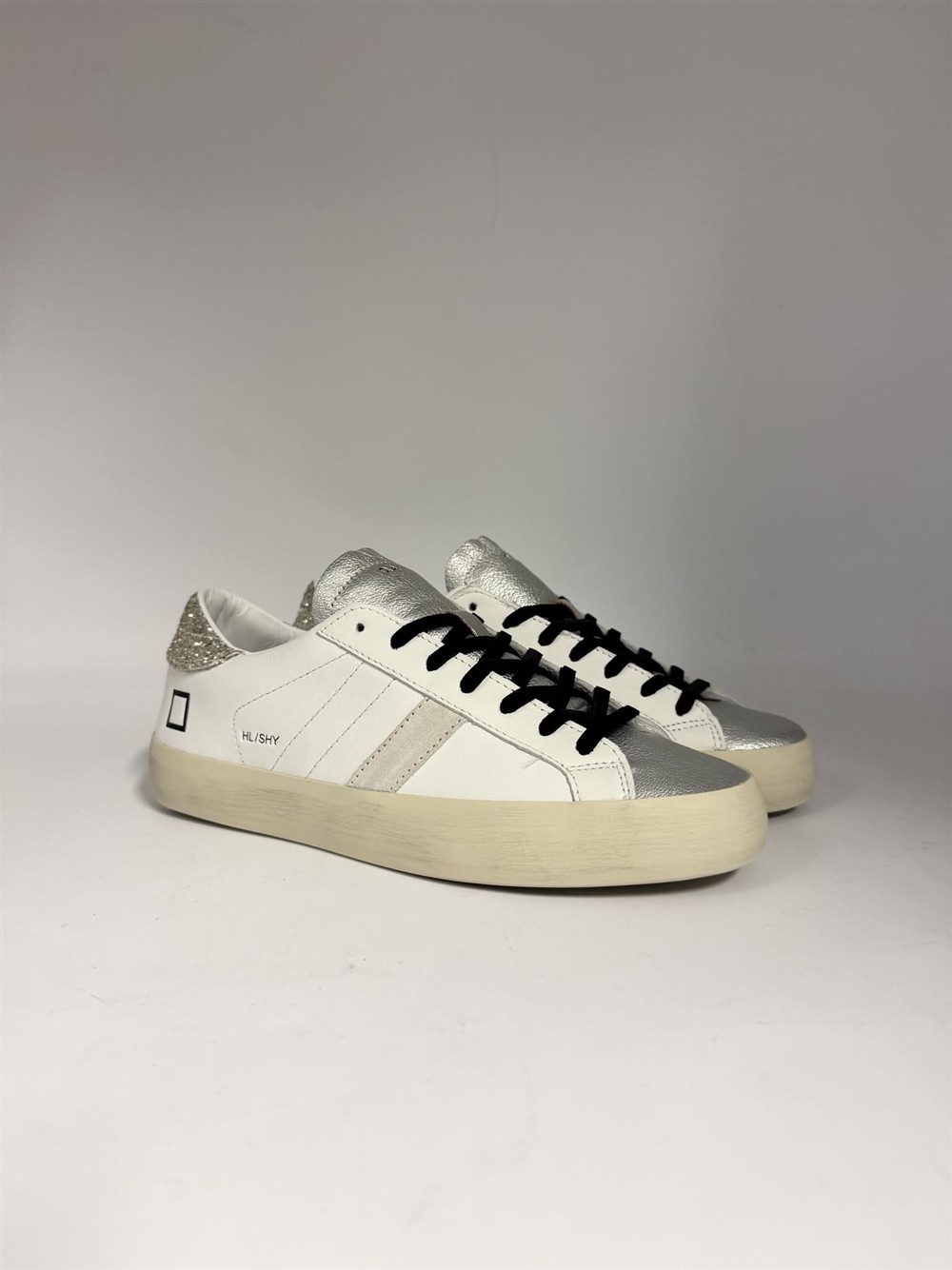 Sneaker in pelle bianca con glitter platino D.A.T.E.