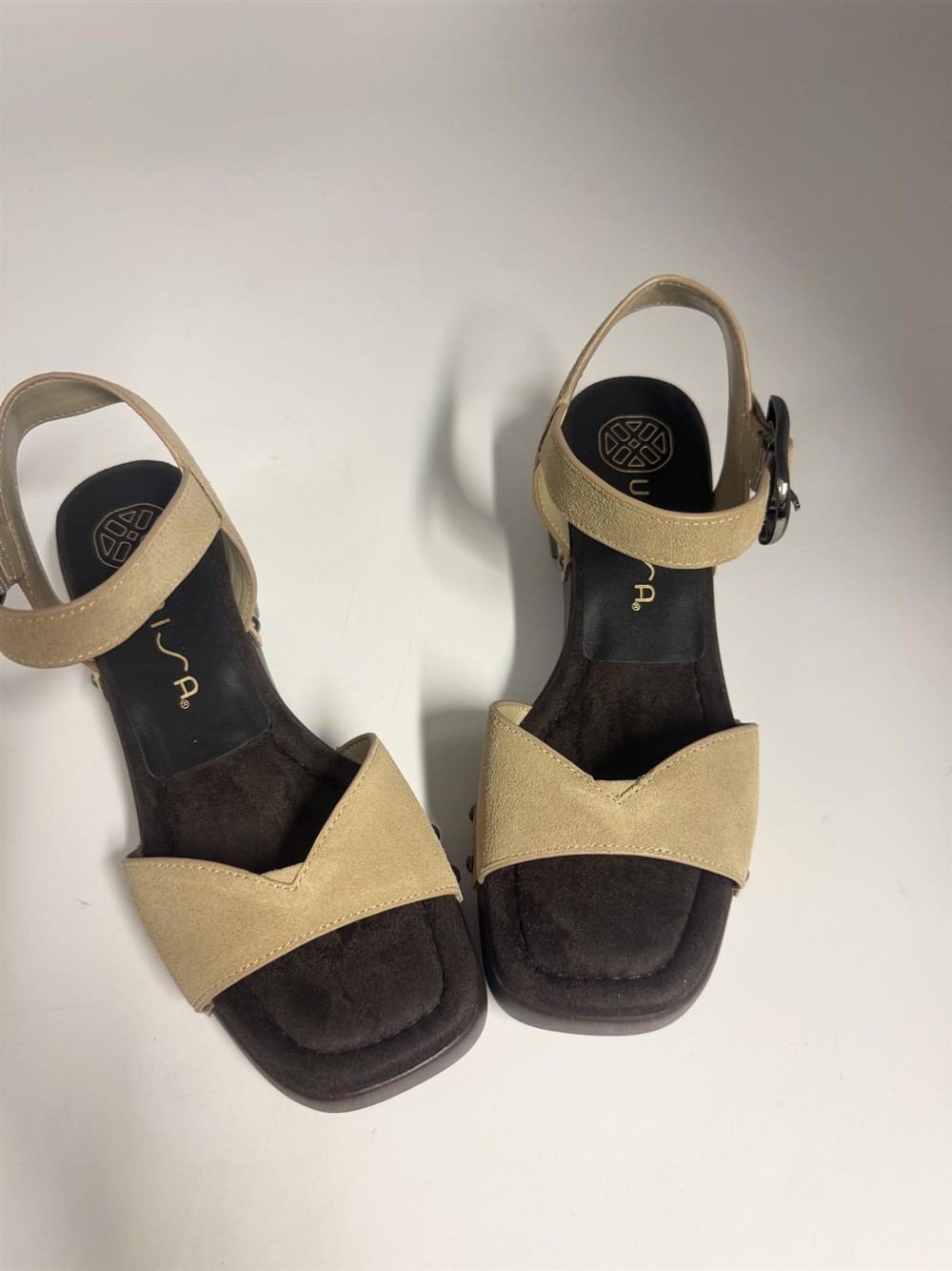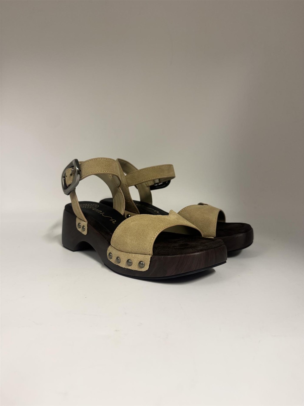 Sandalo zoccolo in camoscio sabbia Unisa