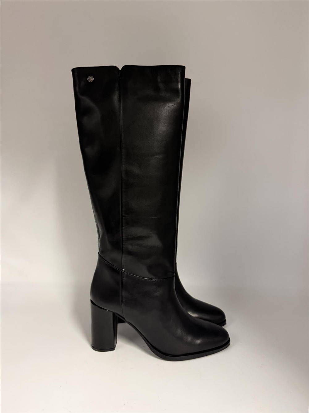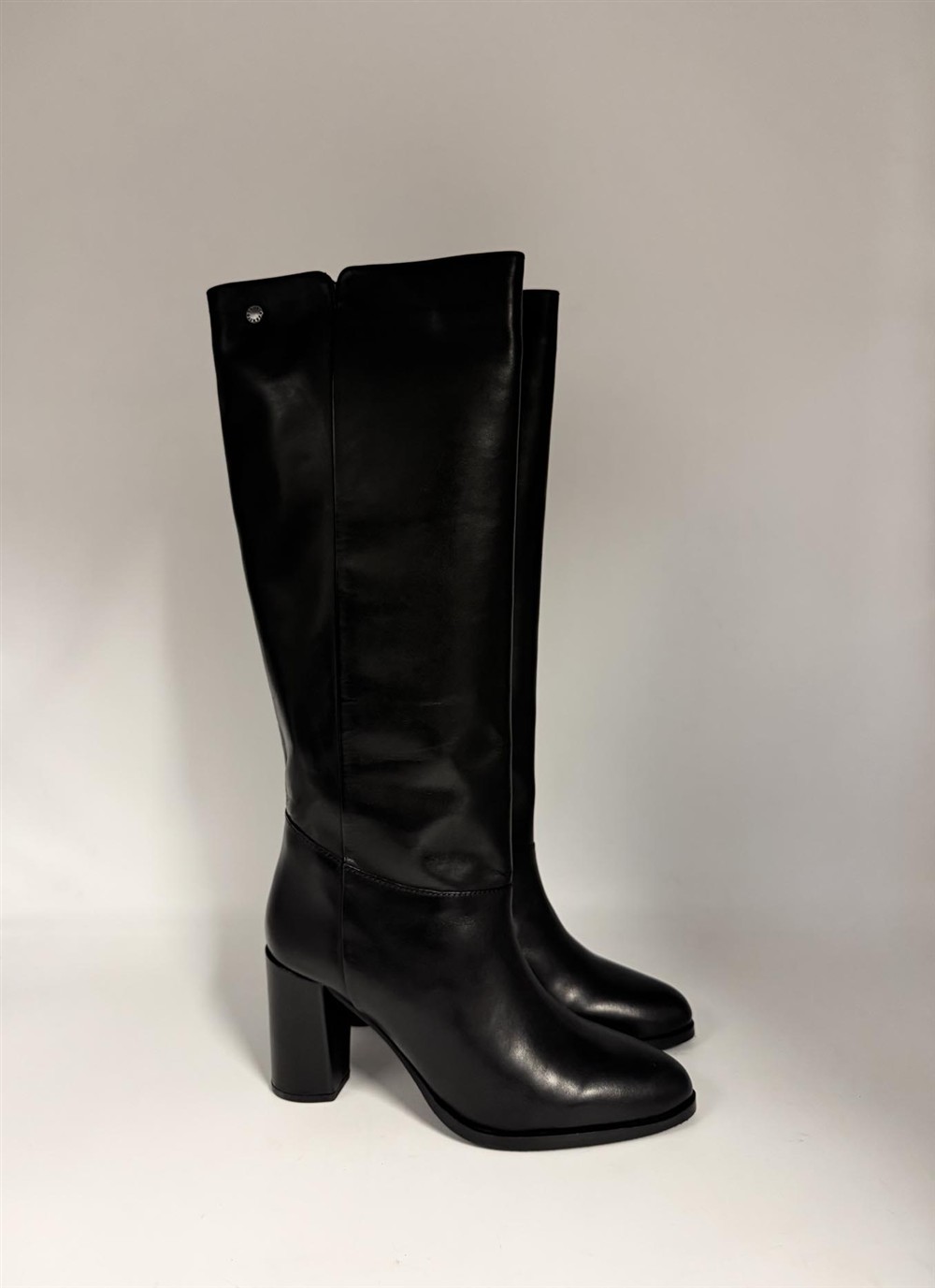 Stivale in pelle nera con tacco