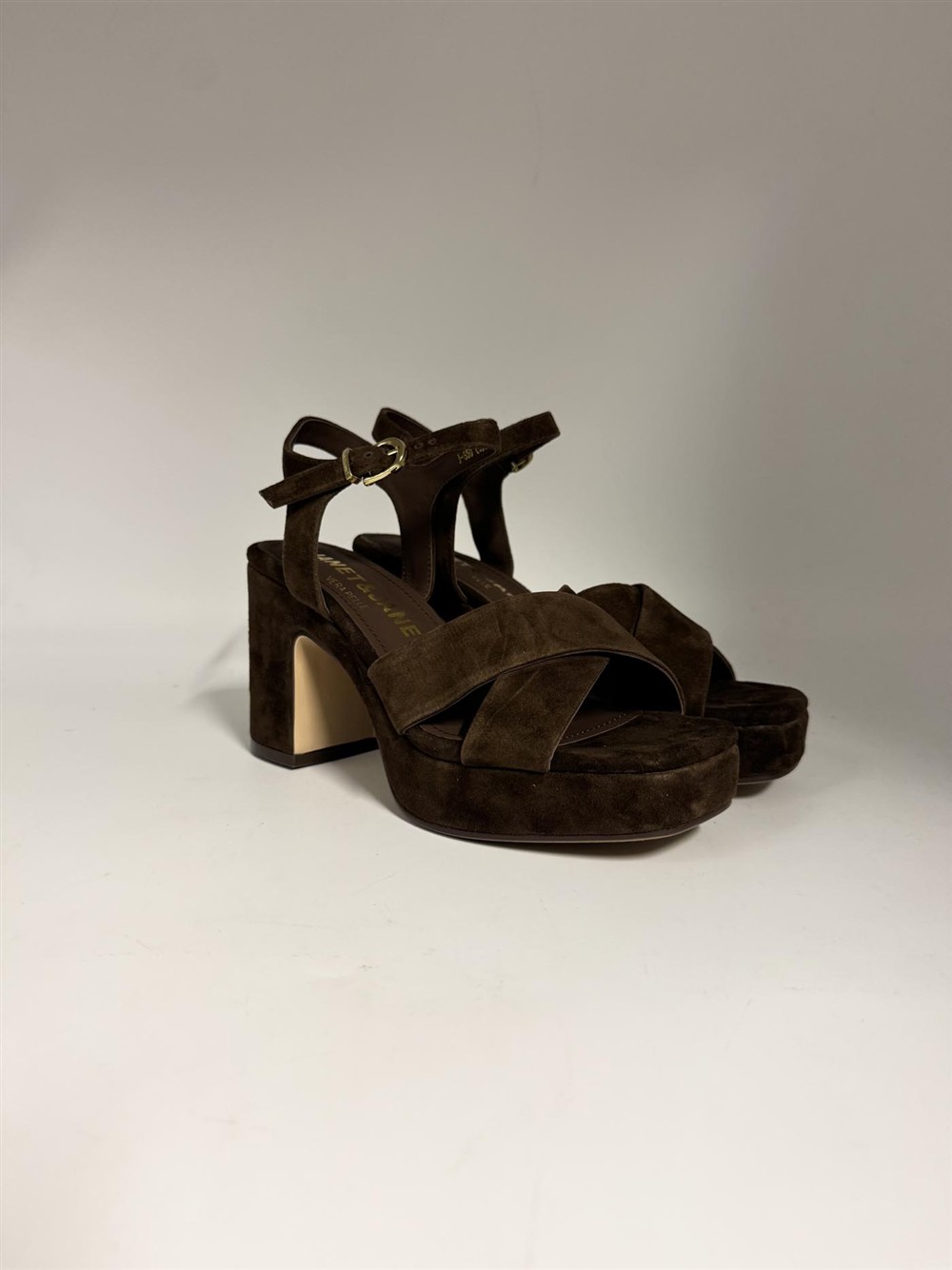 Sandalo con plateau in camoscio marrone Janet&Janet