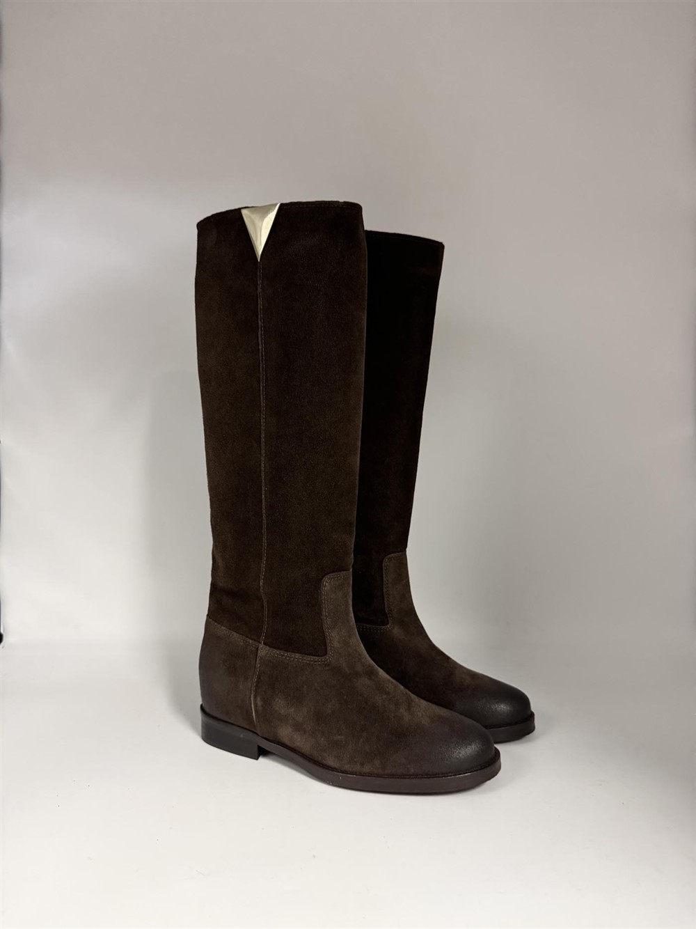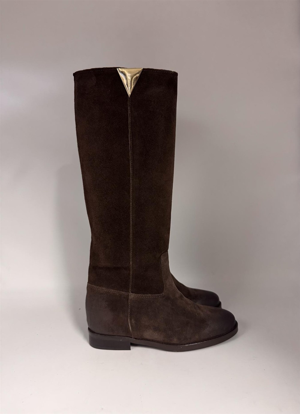 Stivale in camoscio testa di moro con dettaglio oro