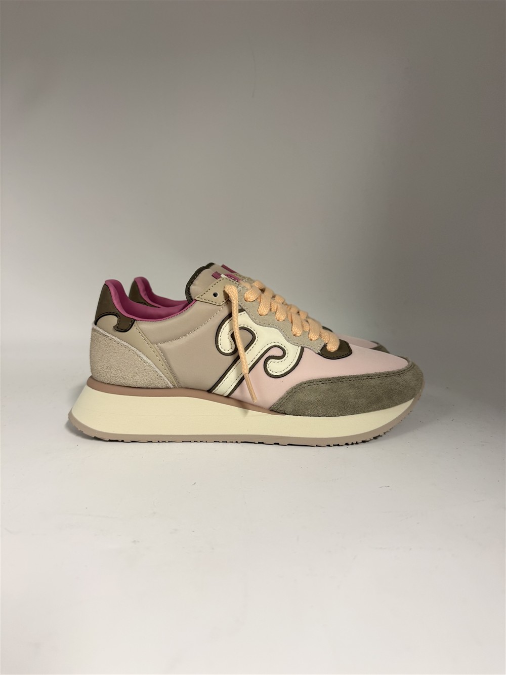 Sneaker in pelle beige e tessuto rosa WUSHU