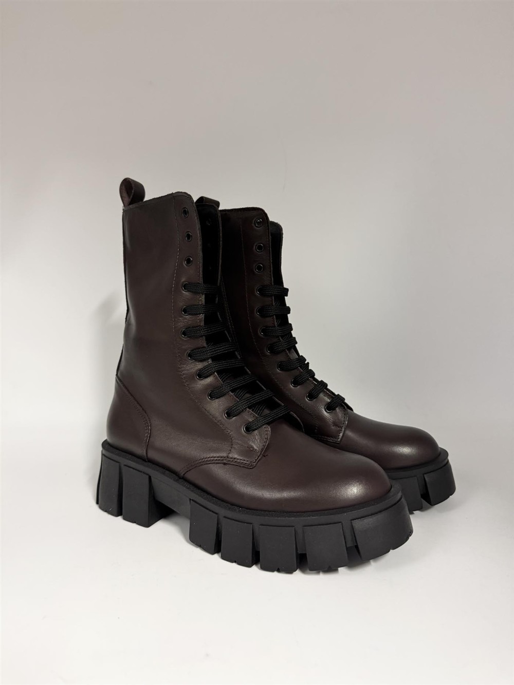 Anfibio in pelle testa di moro con platform Gisél Moiré