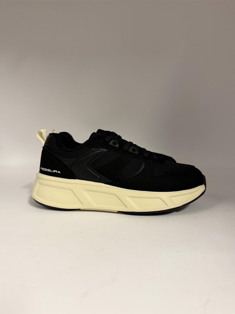 Sneaker in tessuto e pelle nera FESSURA
