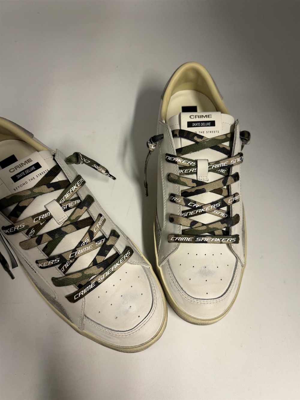 Sneaker in pelle bianca con lacci camouflage Crime London