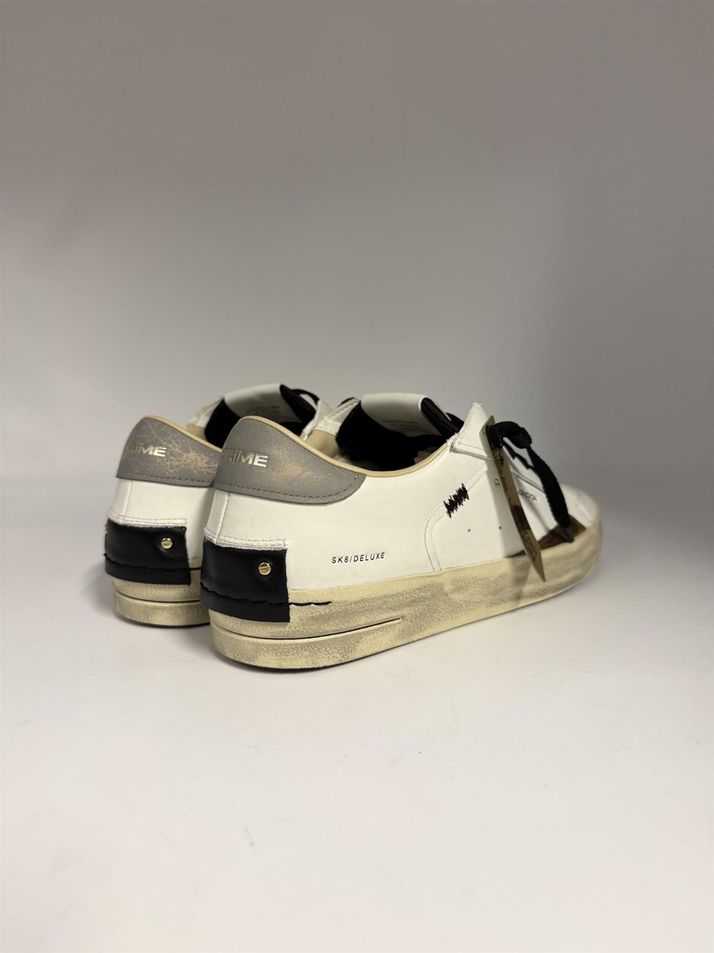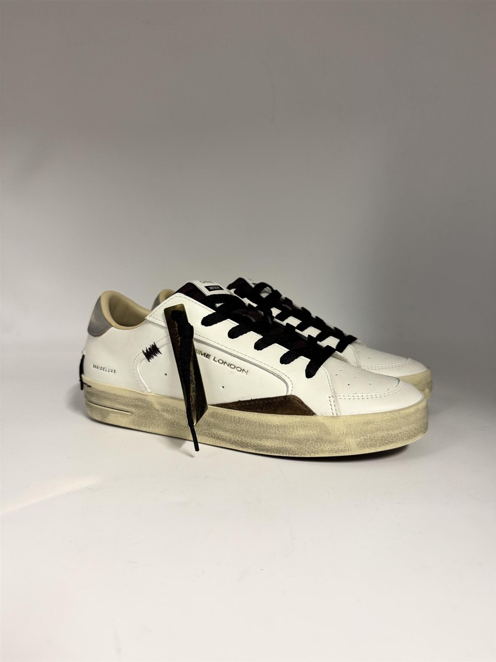 Sneaker in pelle bianca con dettagli bordeaux e talloncino grigio
