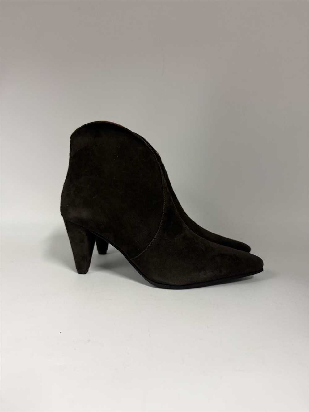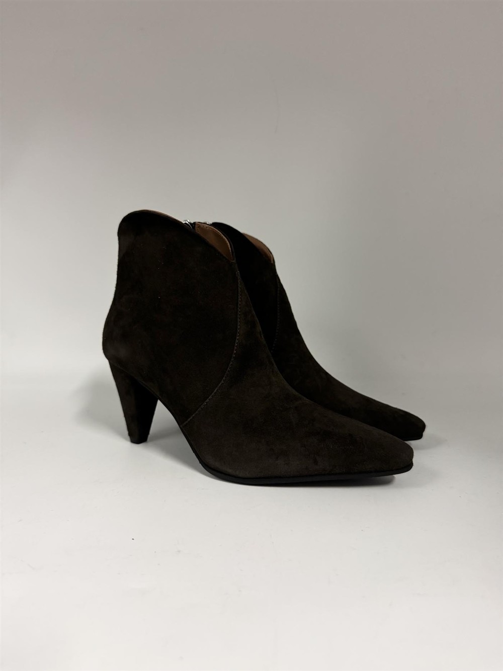 Tronchetto in camoscio moka con tacco a cono Evaluna