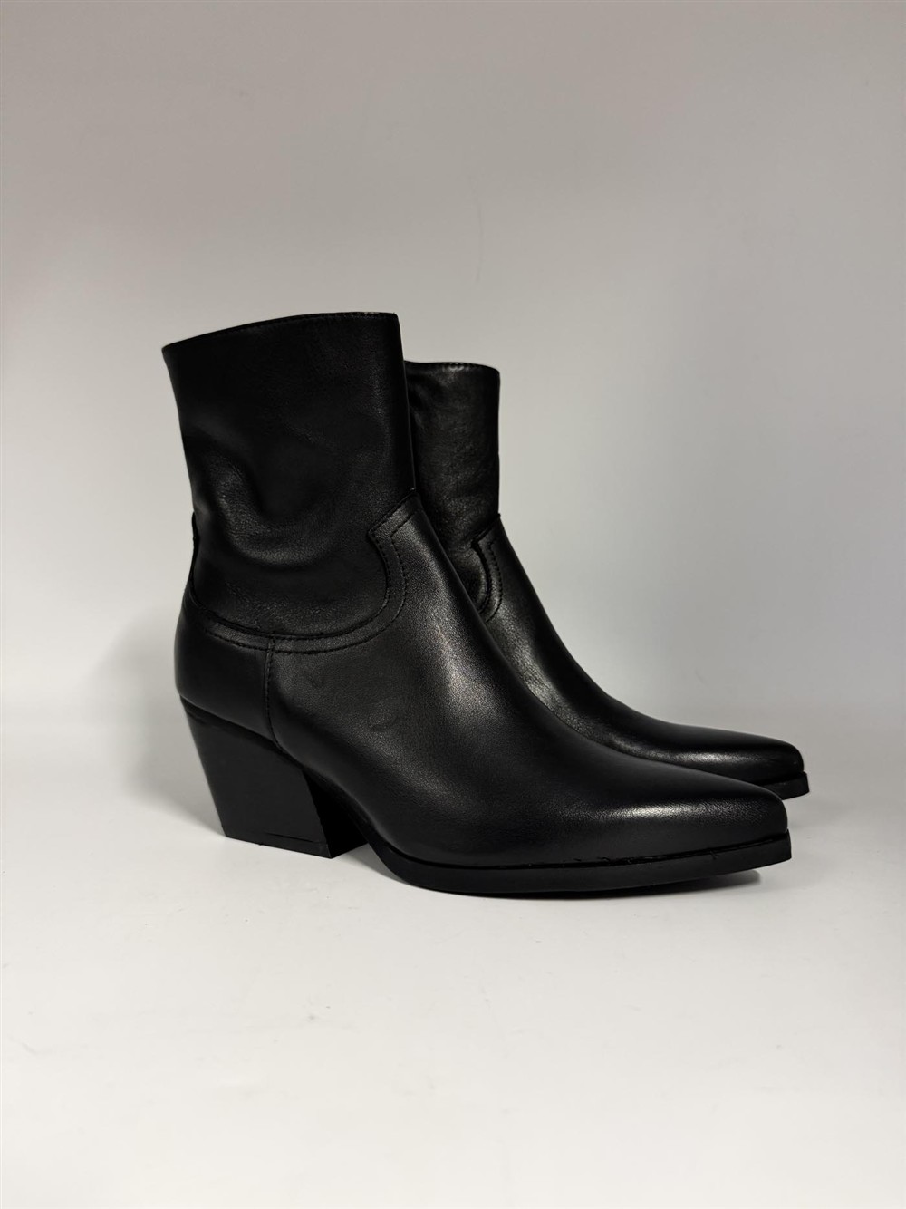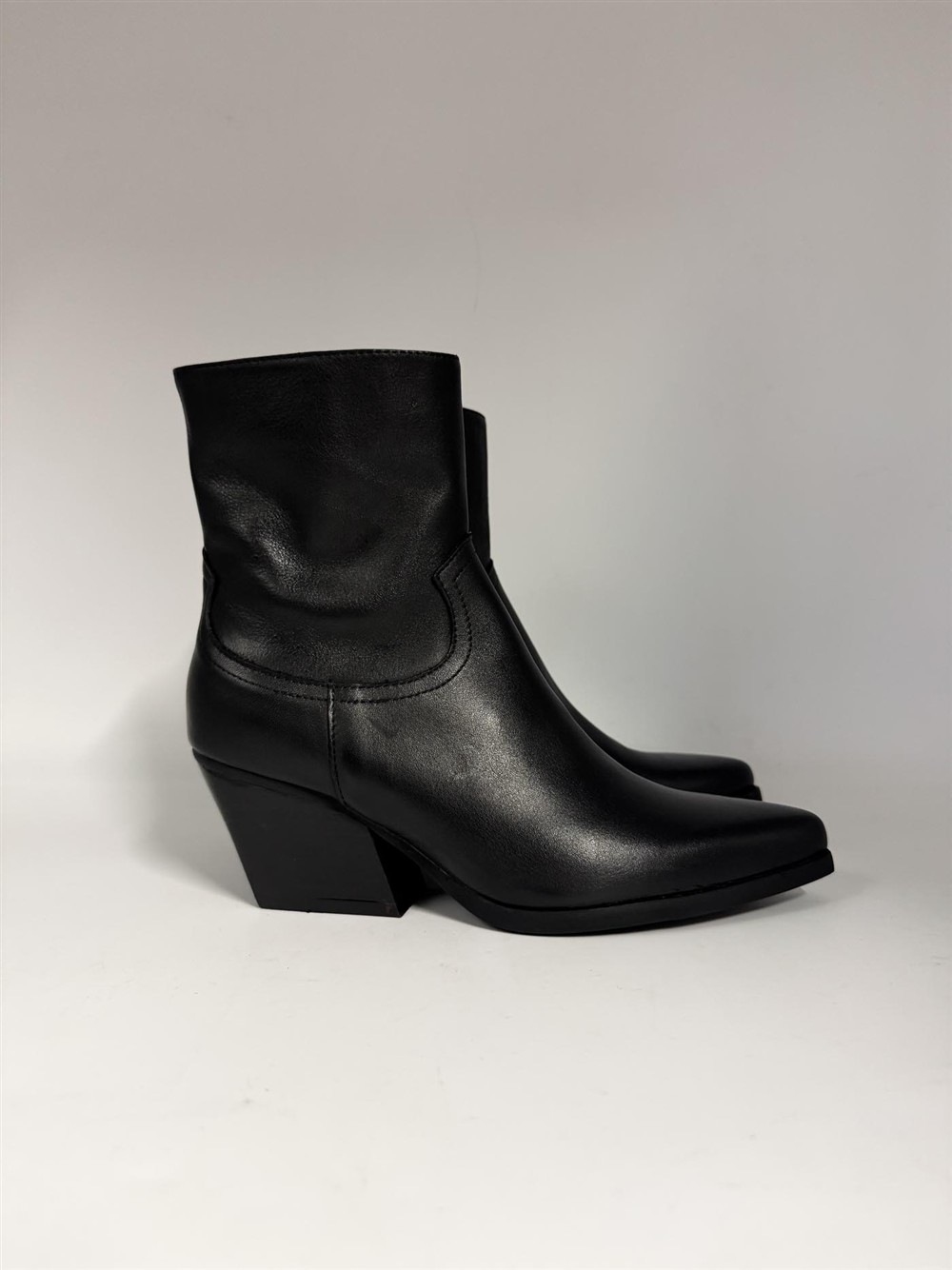 Texano in pelle nera con tacco