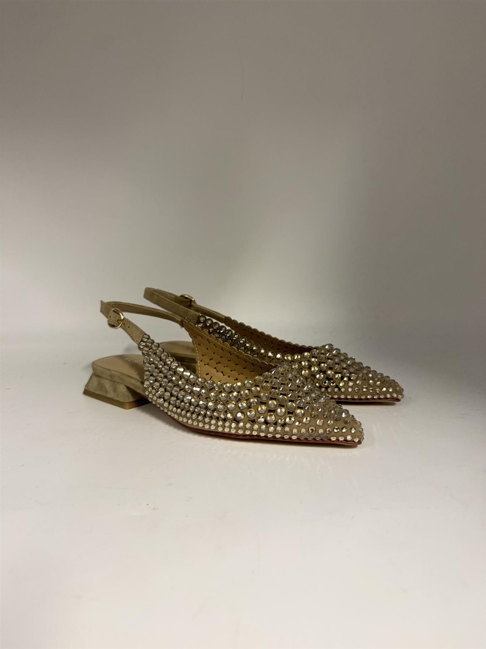 Slingback in camoscio beige con strass