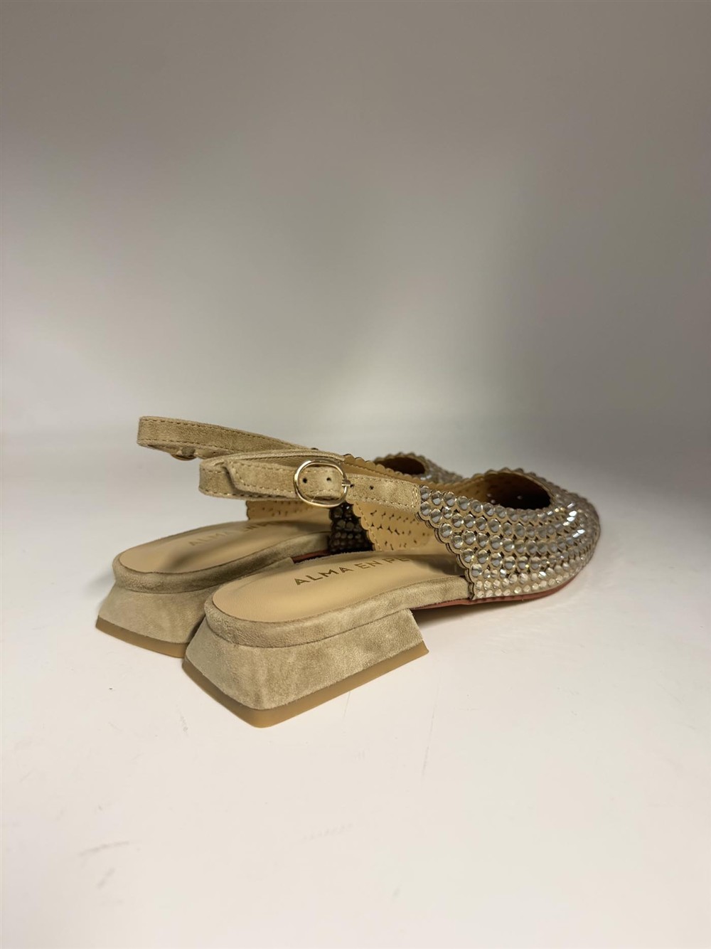 Slingback in camoscio beige con strass Alma en Pena