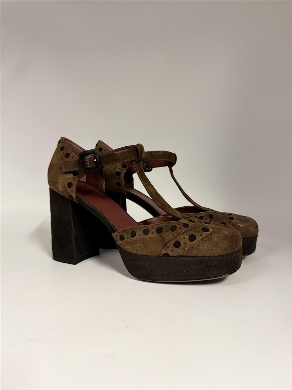 Décolleté in camoscio testa di moro con plateau Roberto Festa