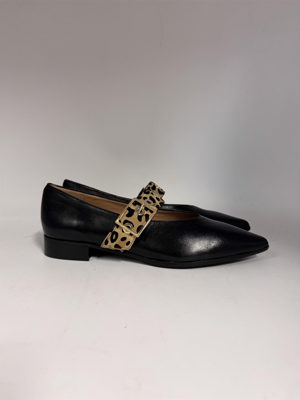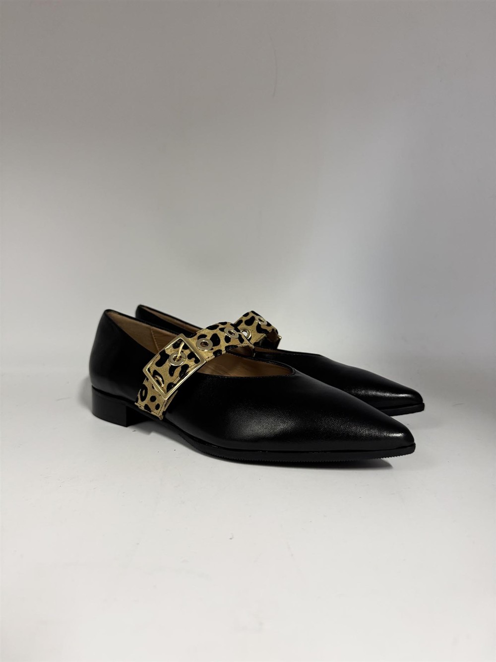 Ballerina in pelle nera con fibbia animalier Il Borgo