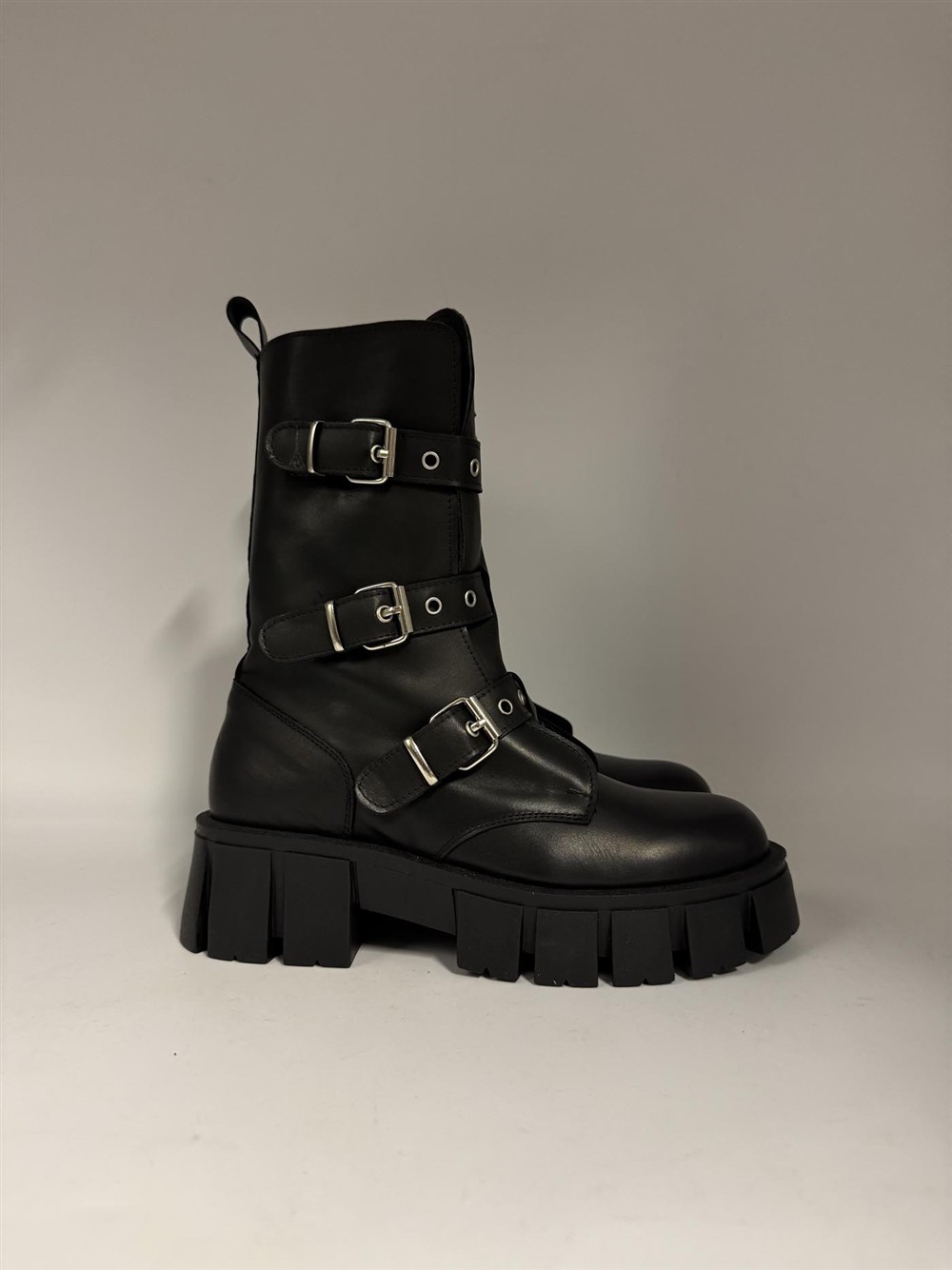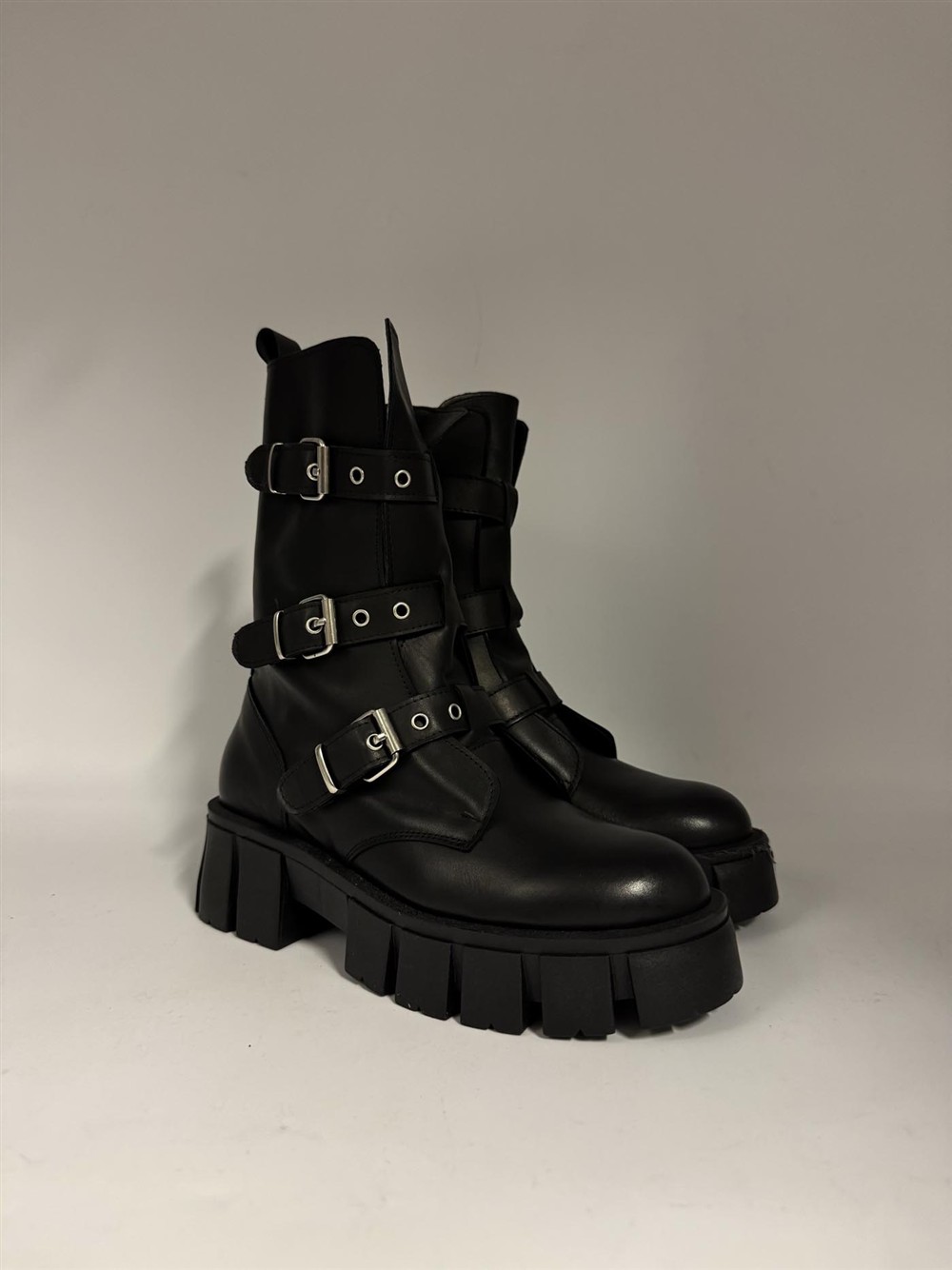 Combat boot in pelle nera con fibbie